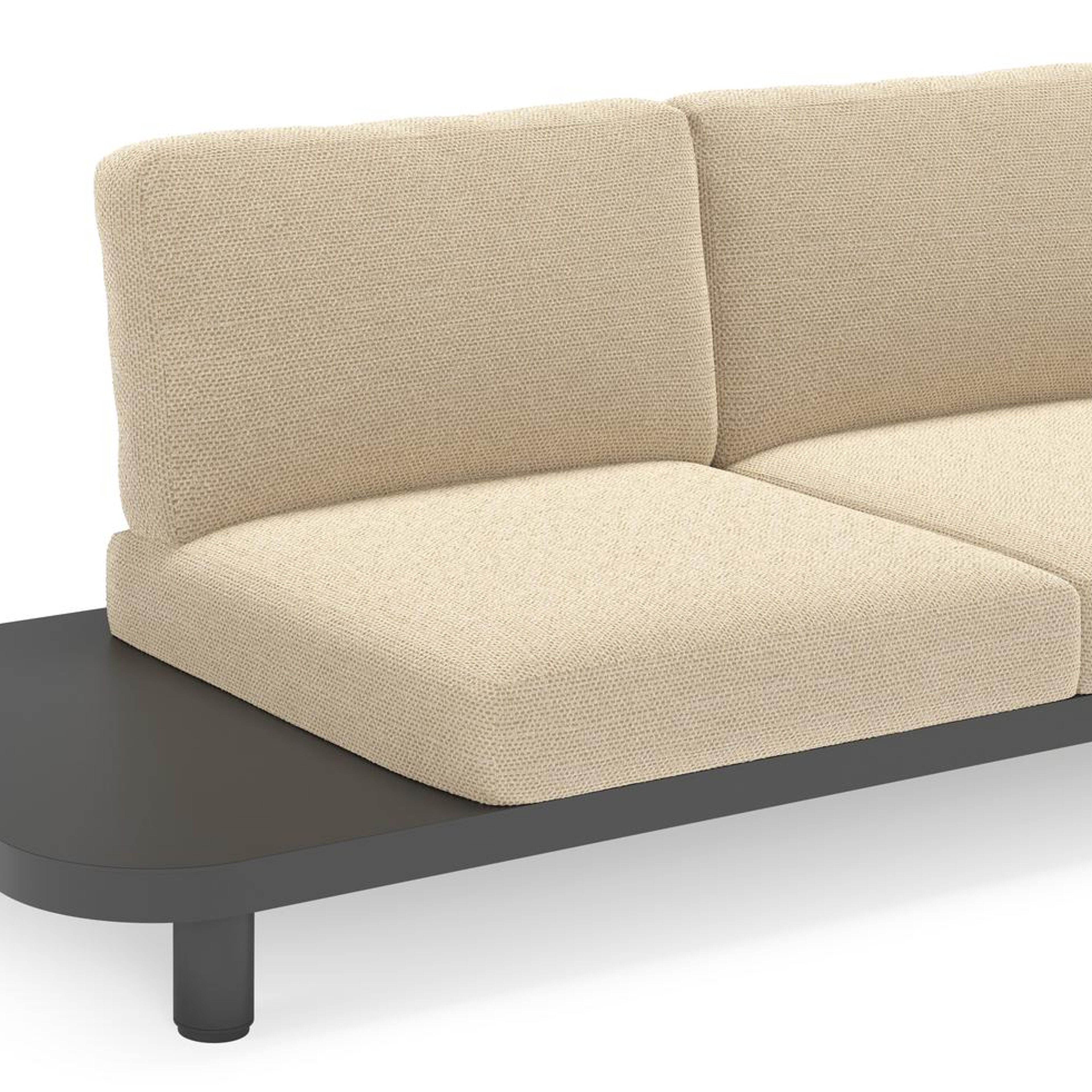Salon de jardin d'angle Donato en aluminium noir et coussins en all weather cosytica Althea Camel | Exterioo mobilier de jardin