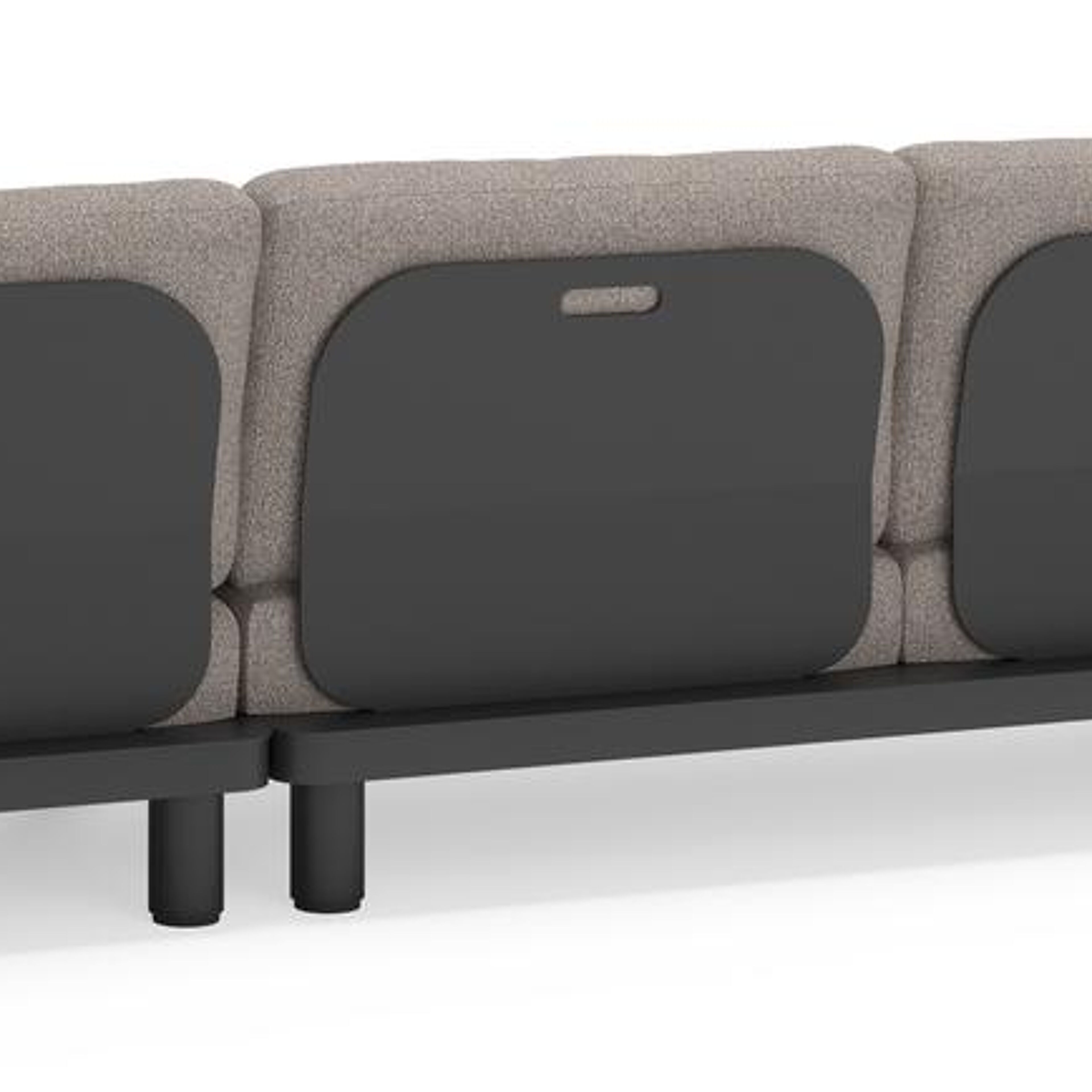 Salon de jardin d'angle Donato en aluminium noir et coussins en all weather sunbrella® luxe Tundra Charcoal | Exterioo mobilier de jardin
