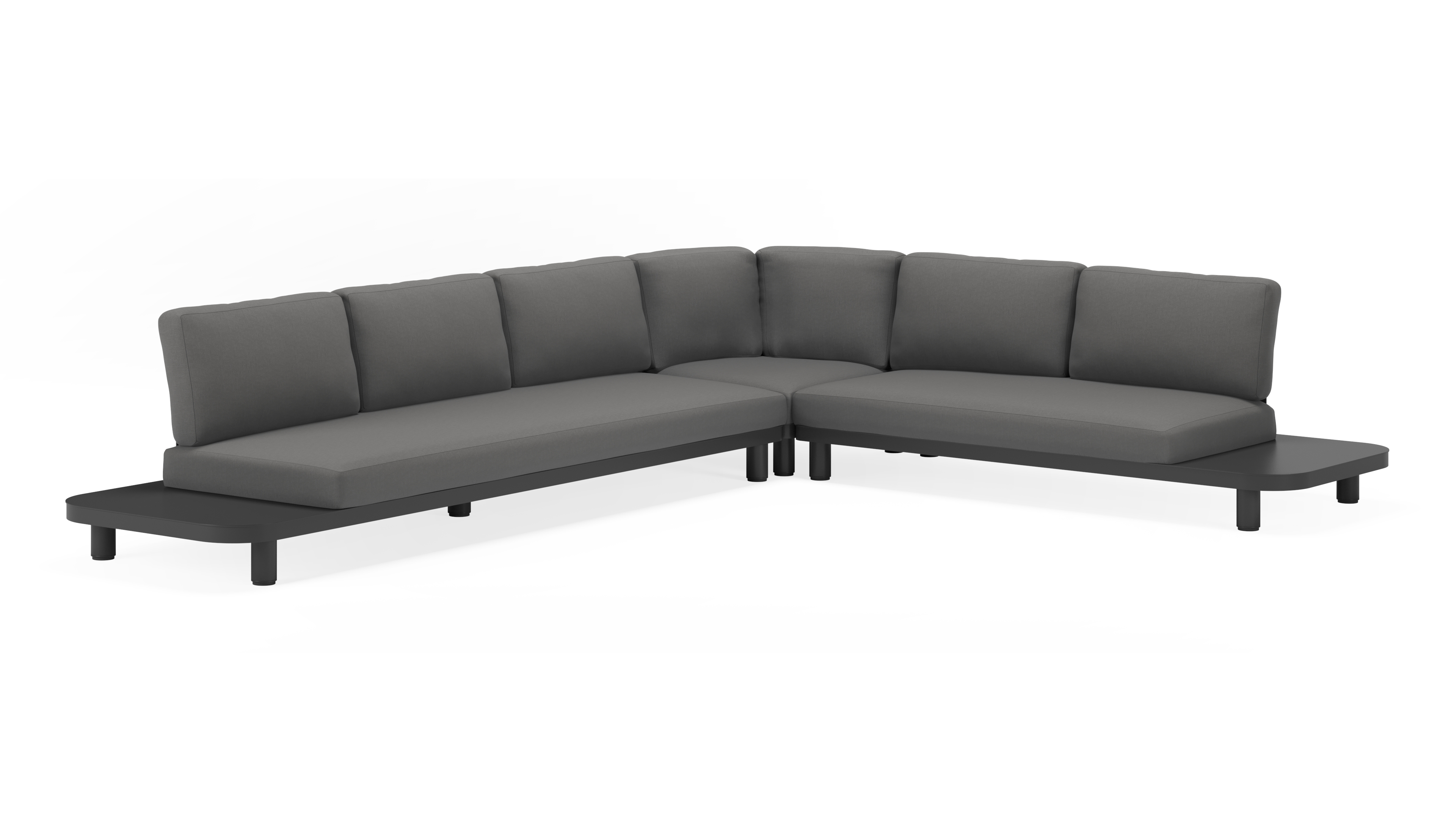 Donato loungehoek in zwart aluminium en met savane zinc all weather sunbrella® luxe kussens | Exterioo mobilier de jardin