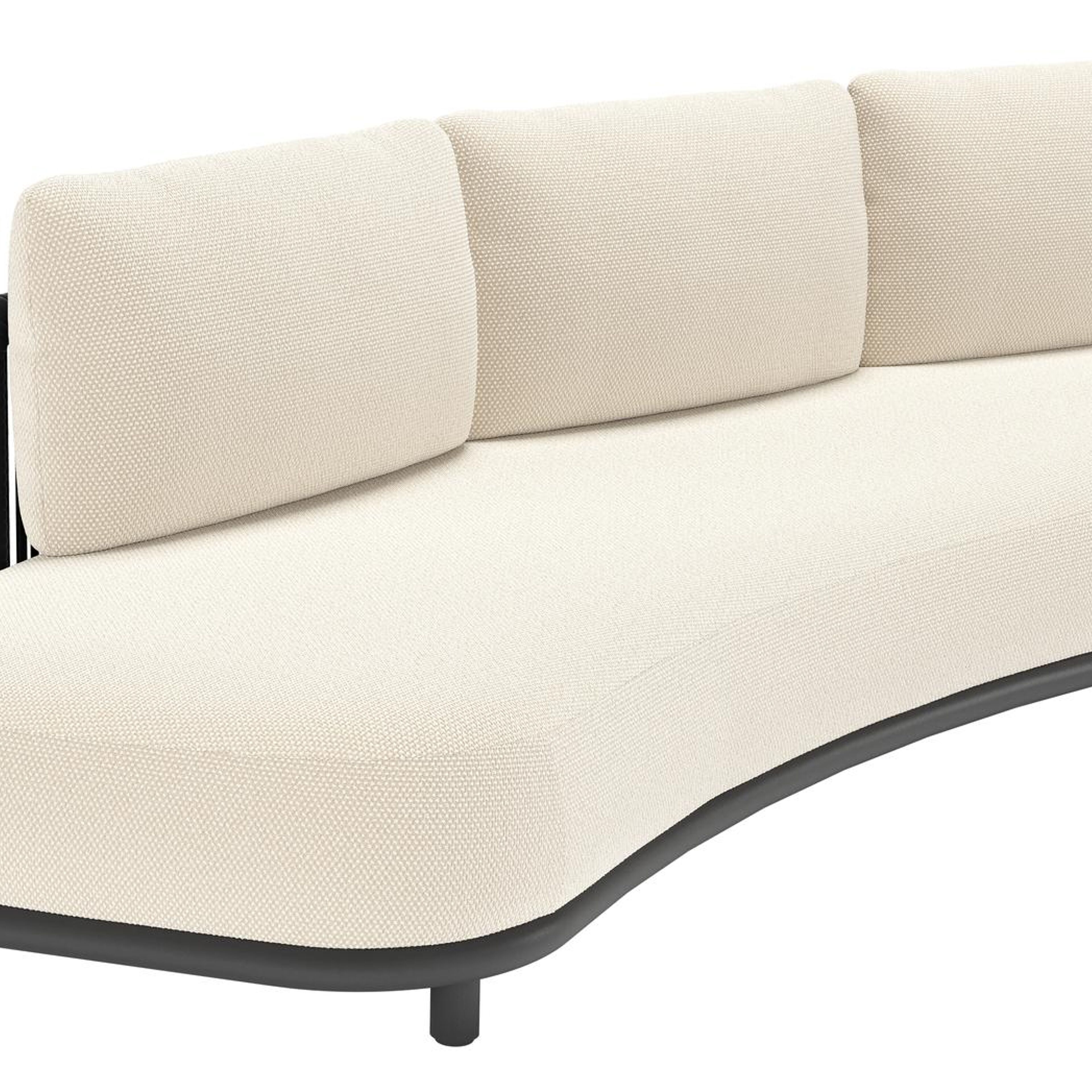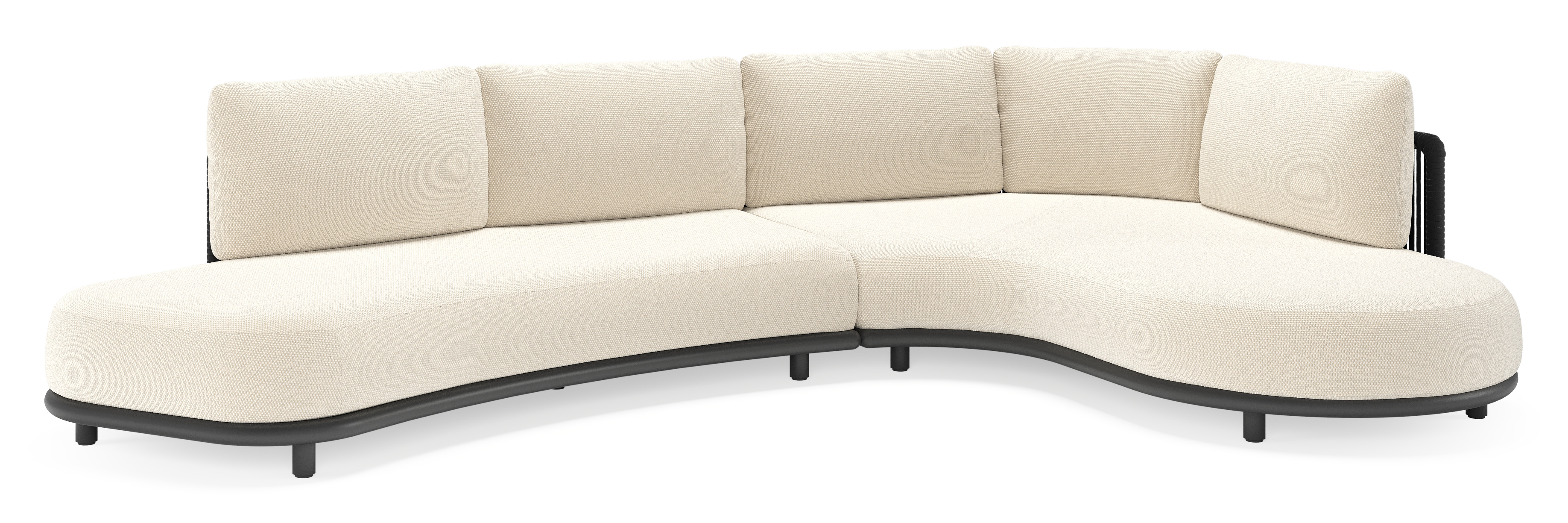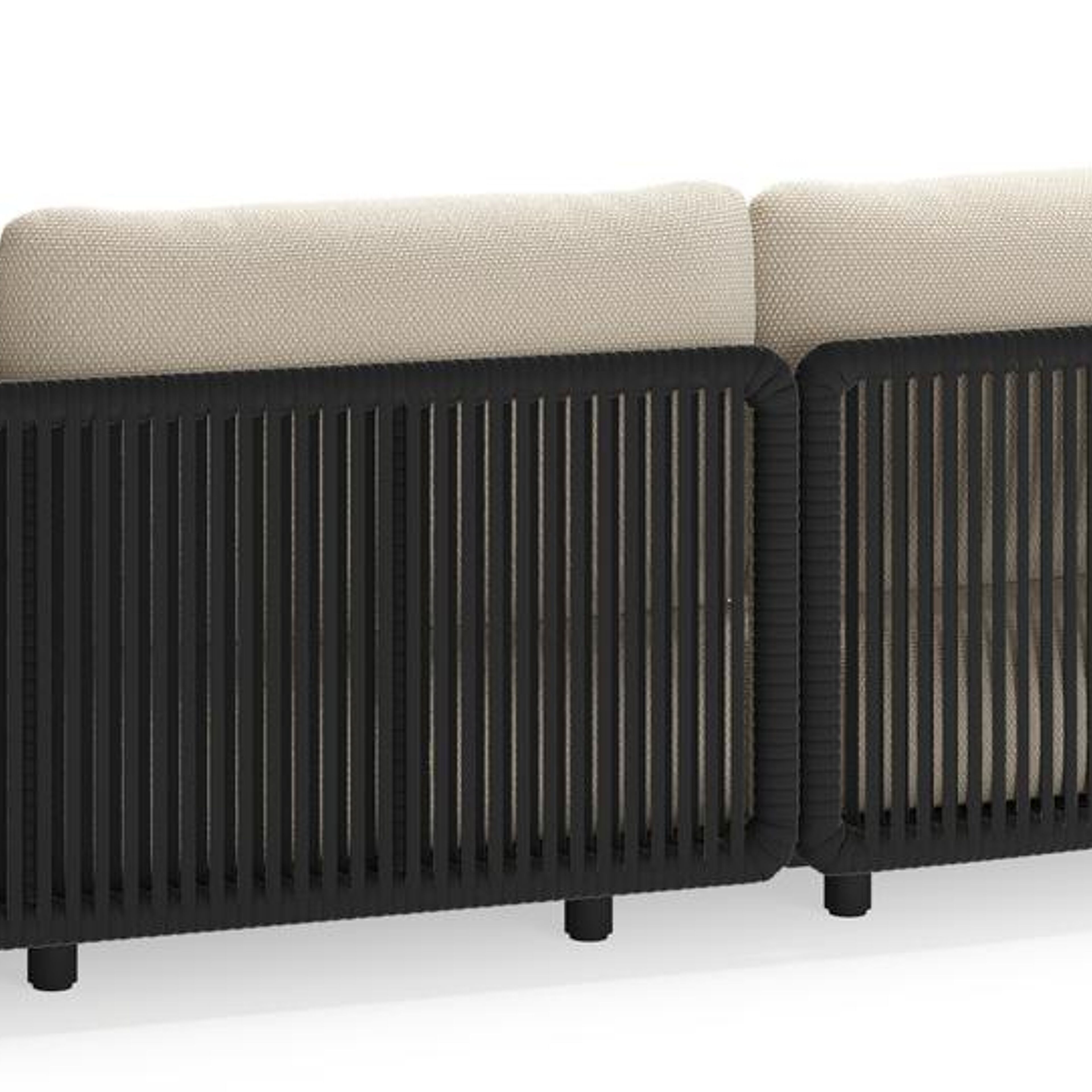 Salon de jardin d'angle Lomano en aluminium noir et corde luxe plate tissée verticalement noir et coussins en all weather cosytica althea off white | Exterioo mobilier de jardin