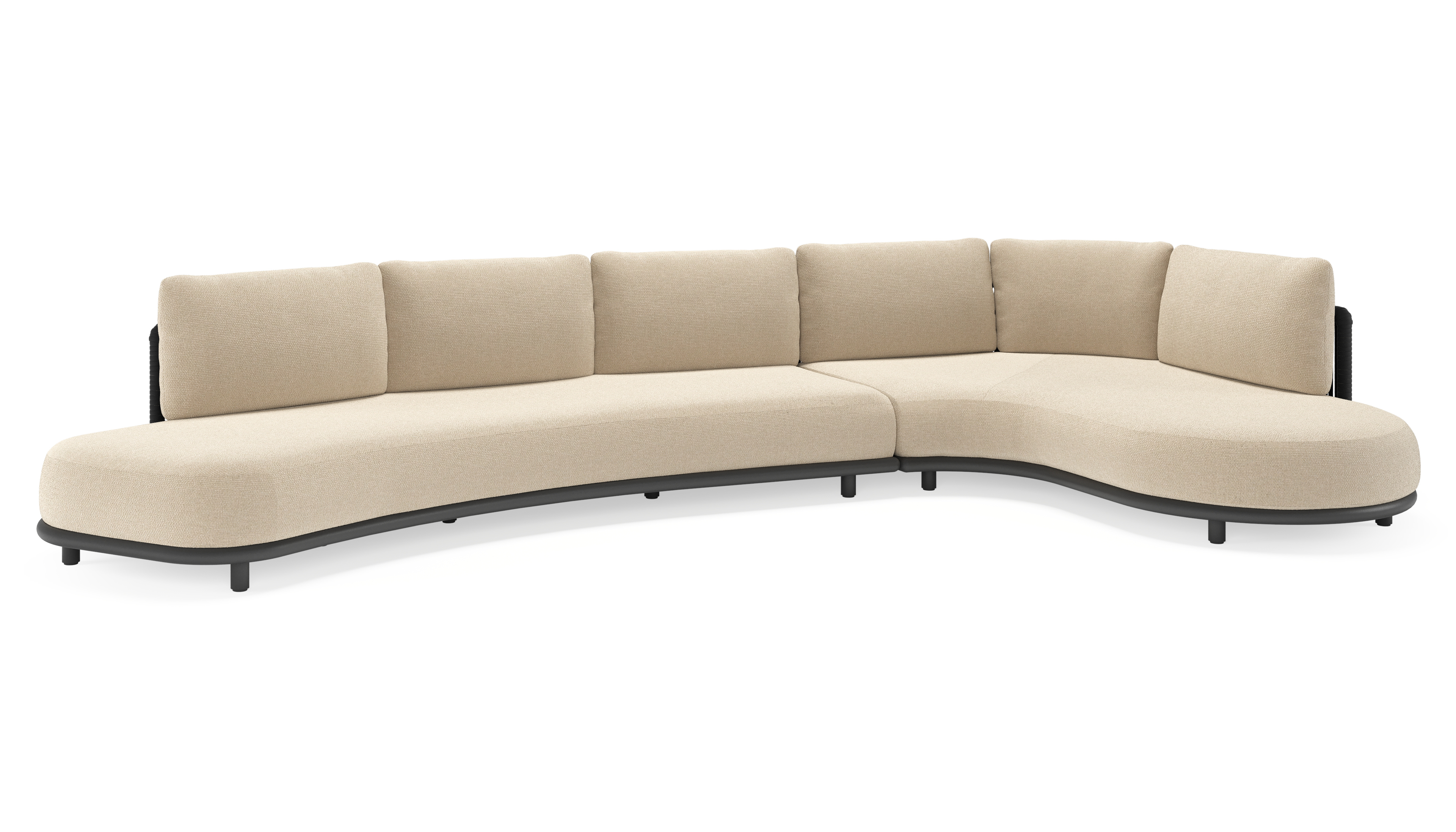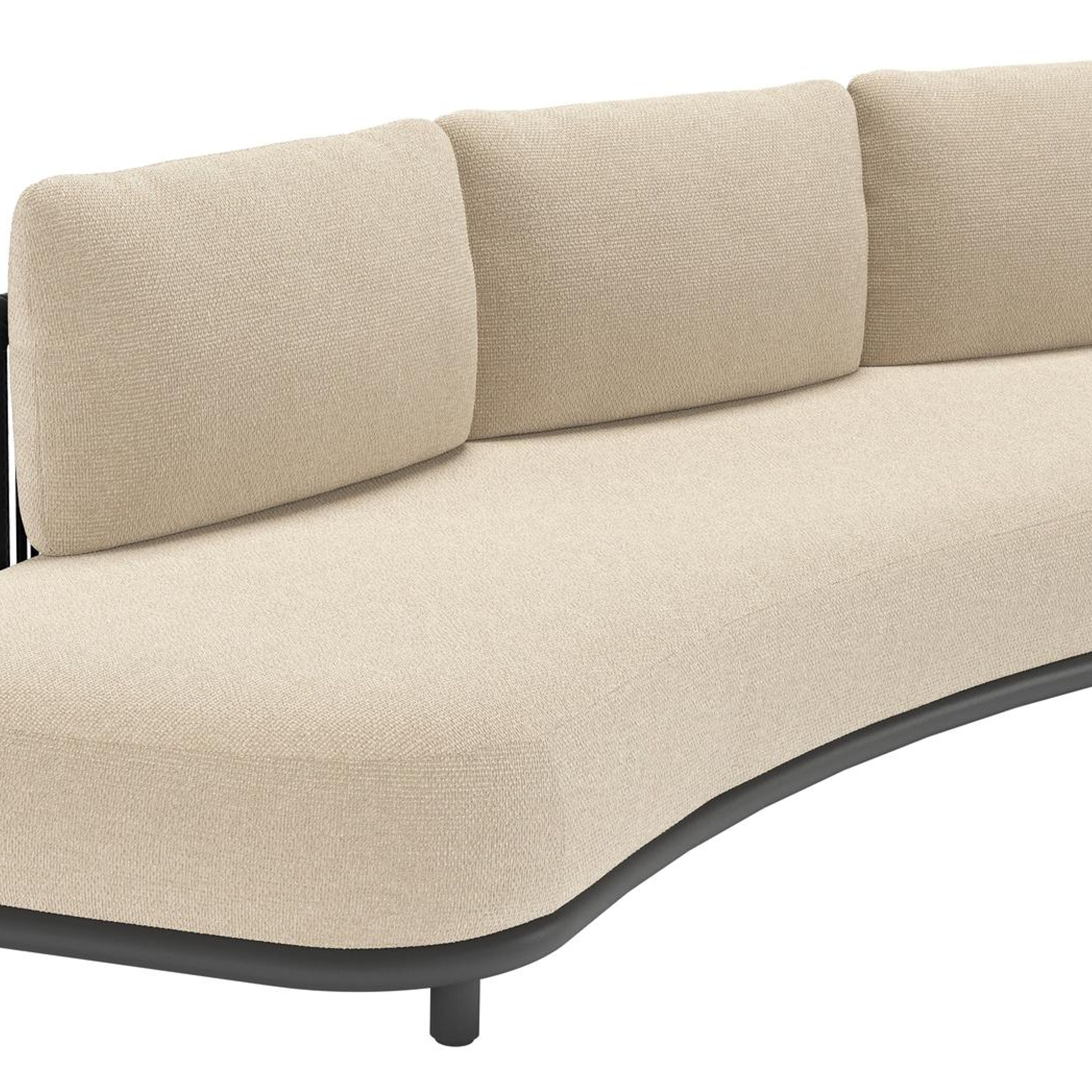 Salon de jardin d'angle Lomano en aluminium noir et corde luxe plate tissée verticalement noir et coussins en all weather cosytica althea chalk | Exterioo mobilier de jardin
