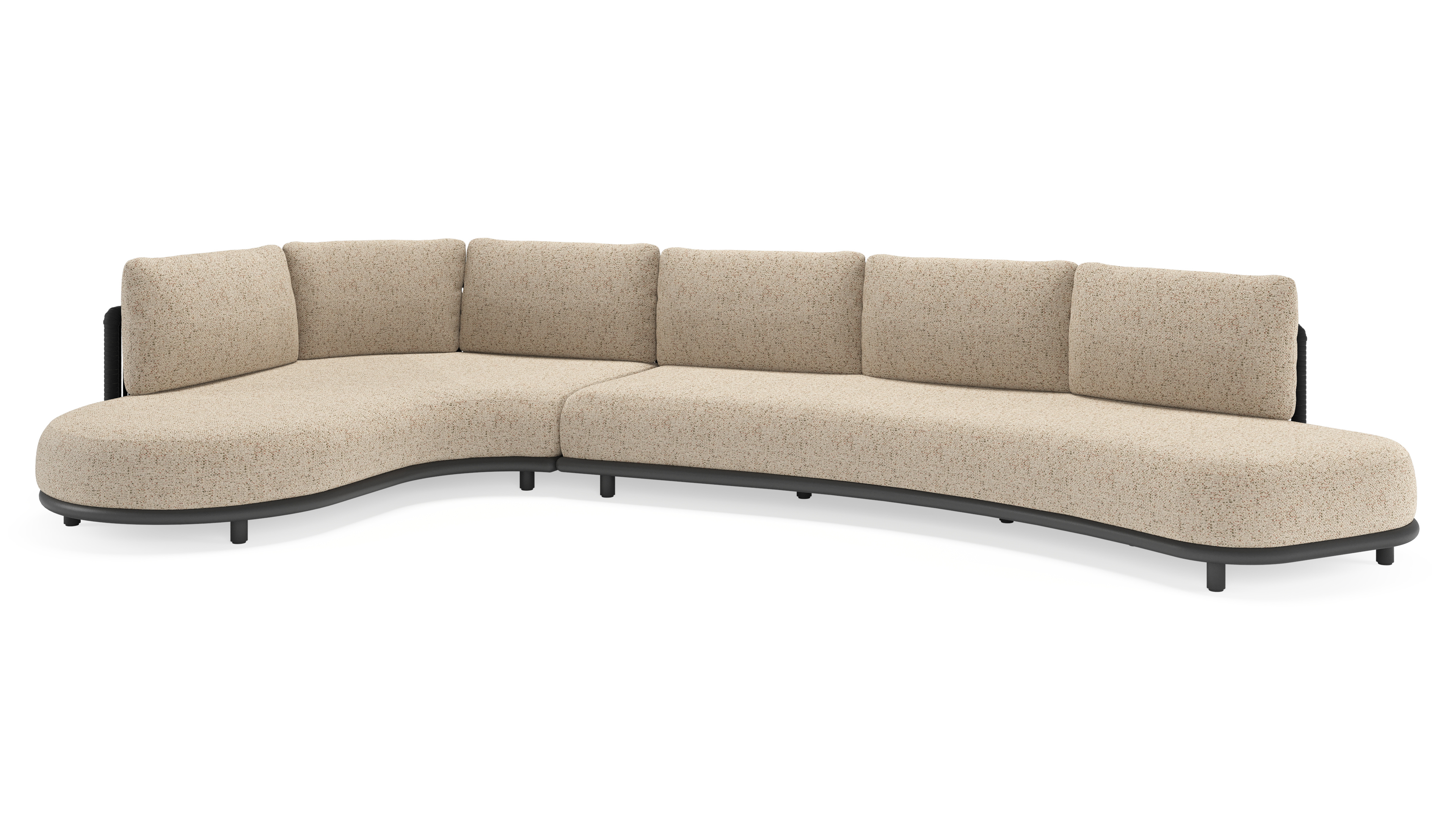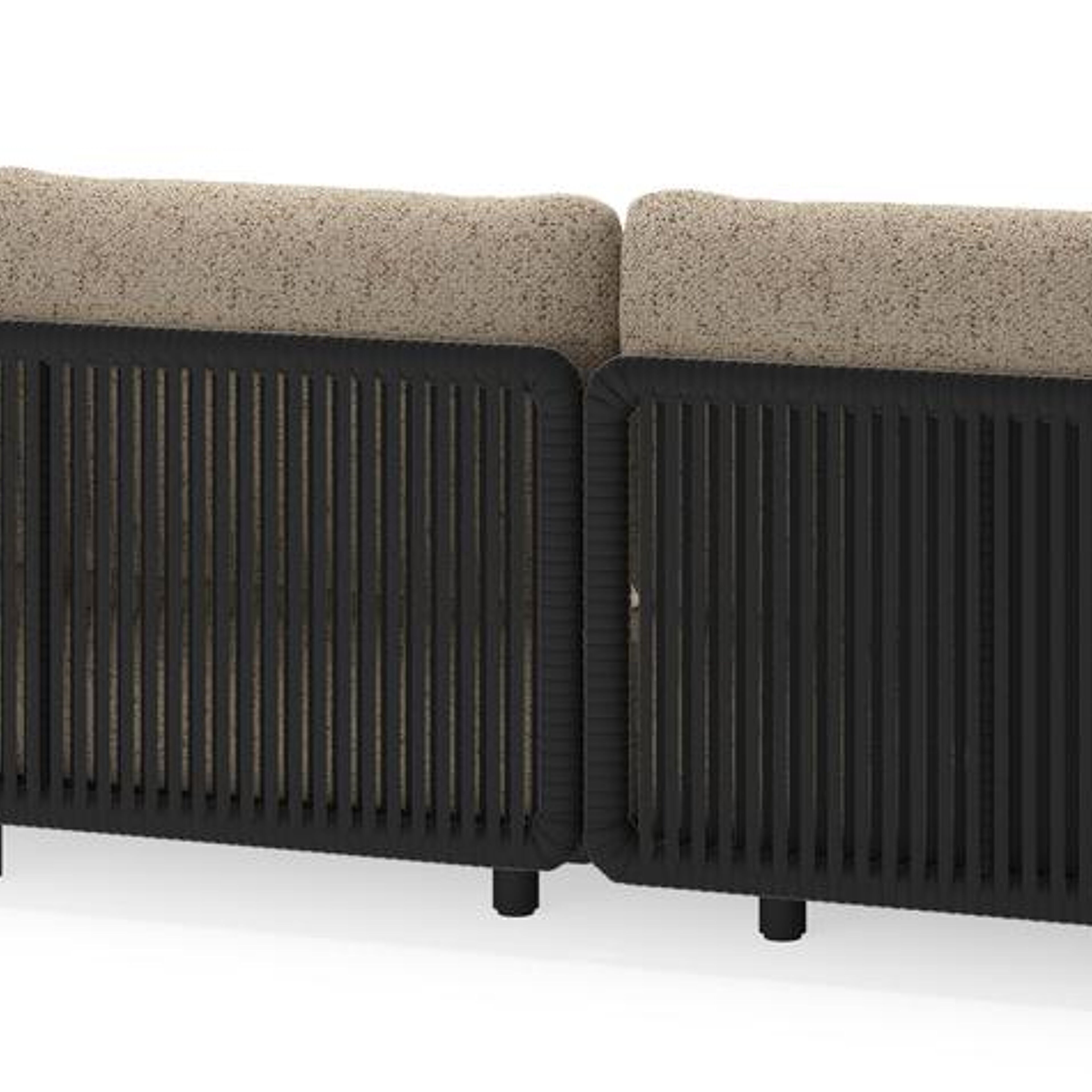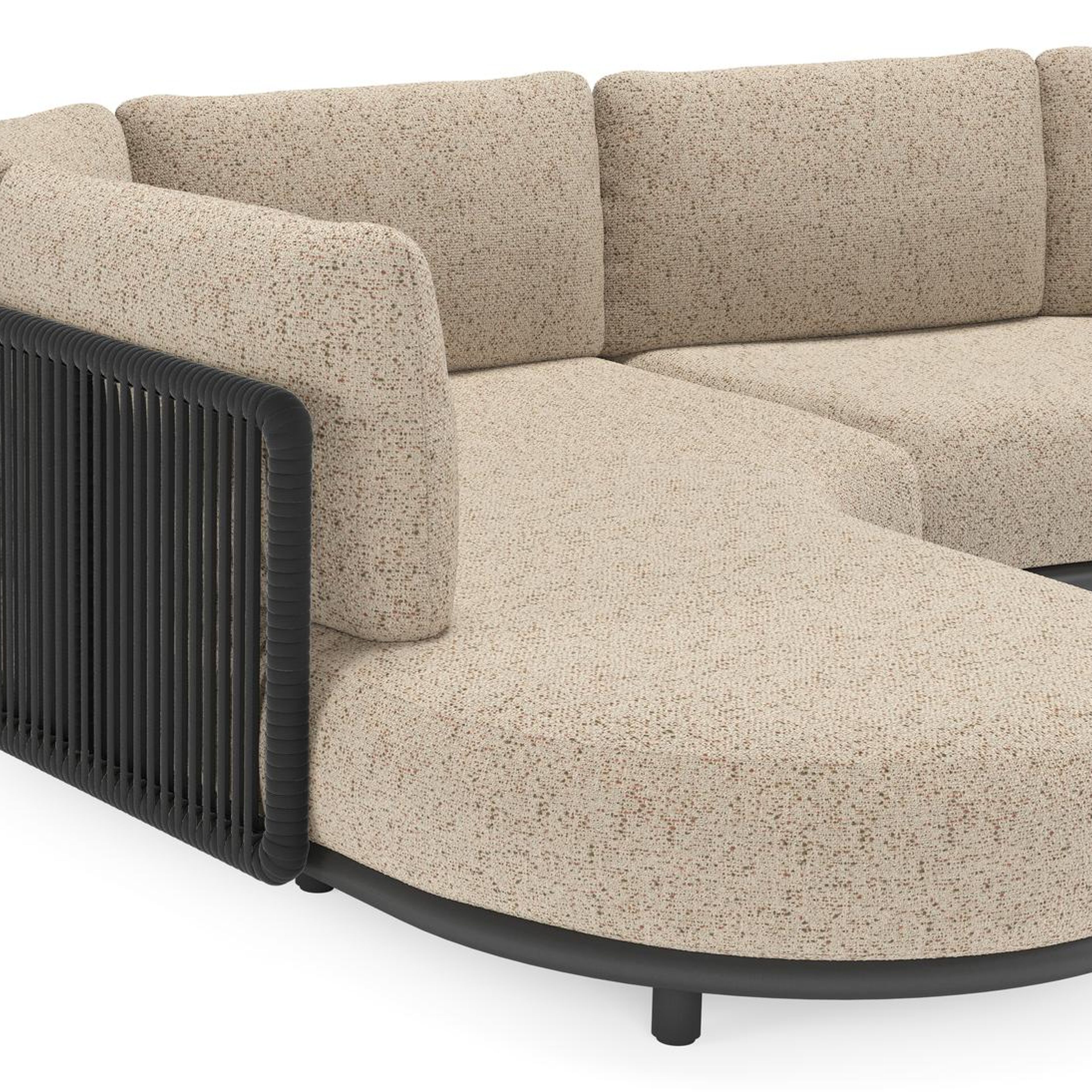 Salon de jardin d'angle Lomano en aluminium noir et corde luxe plate tissée verticalement noir et coussins en all weather cosytica bora jungle | Exterioo mobilier de jardin