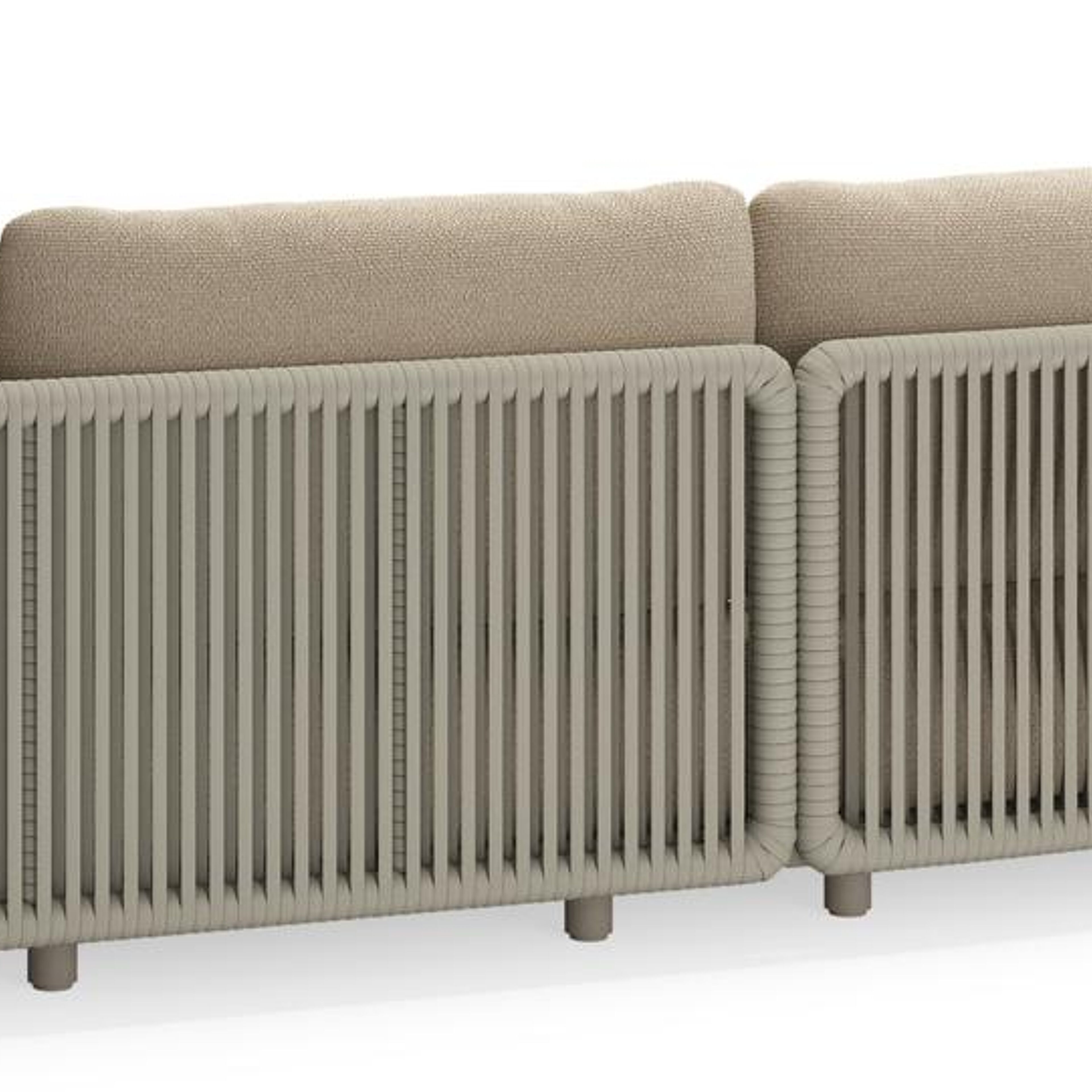 Salon de jardin d'angle Lomano en aluminium beige et corde luxe plate tissée verticalement beige et coussins en all weather cosytica Althea Chalk | Exterioo mobilier de jardin