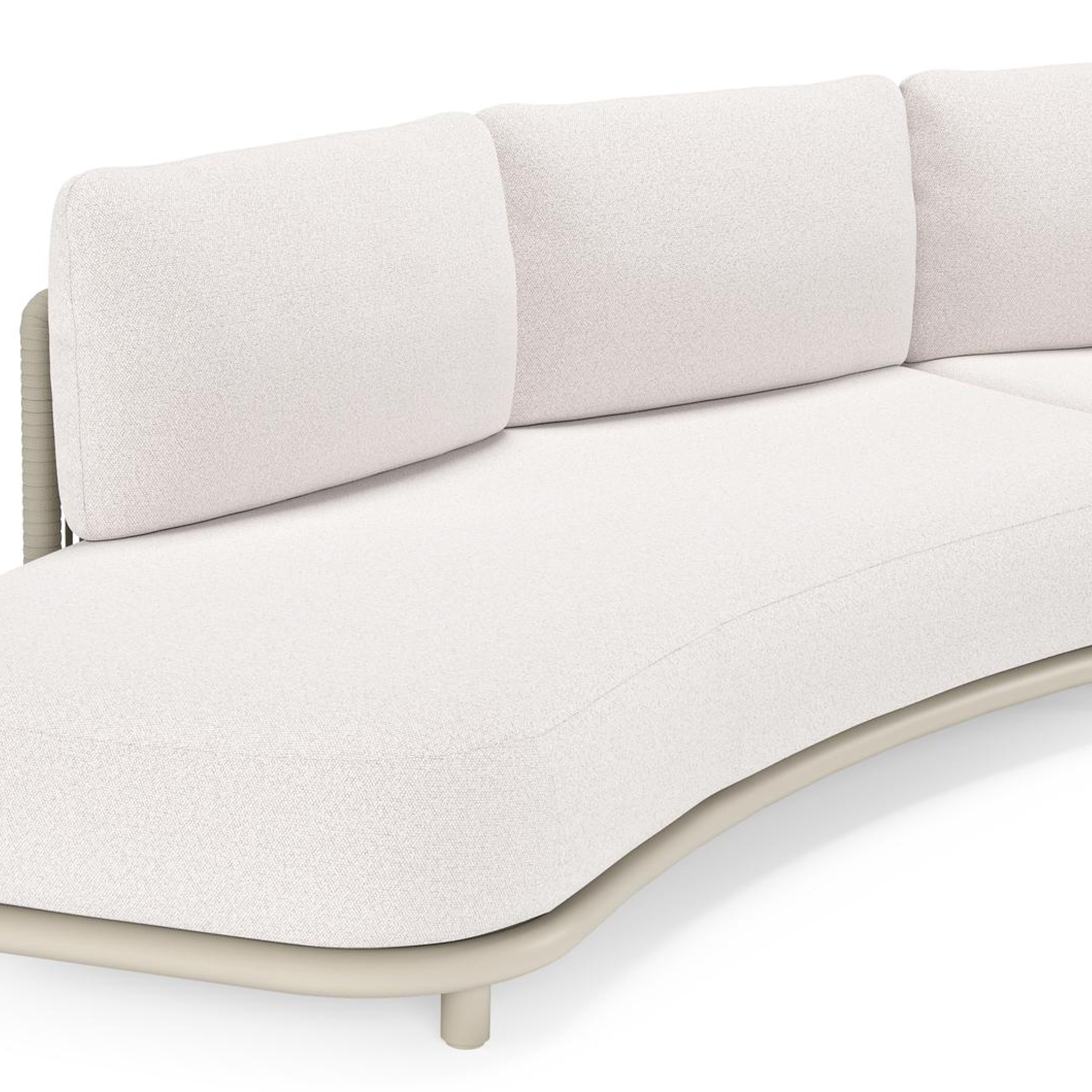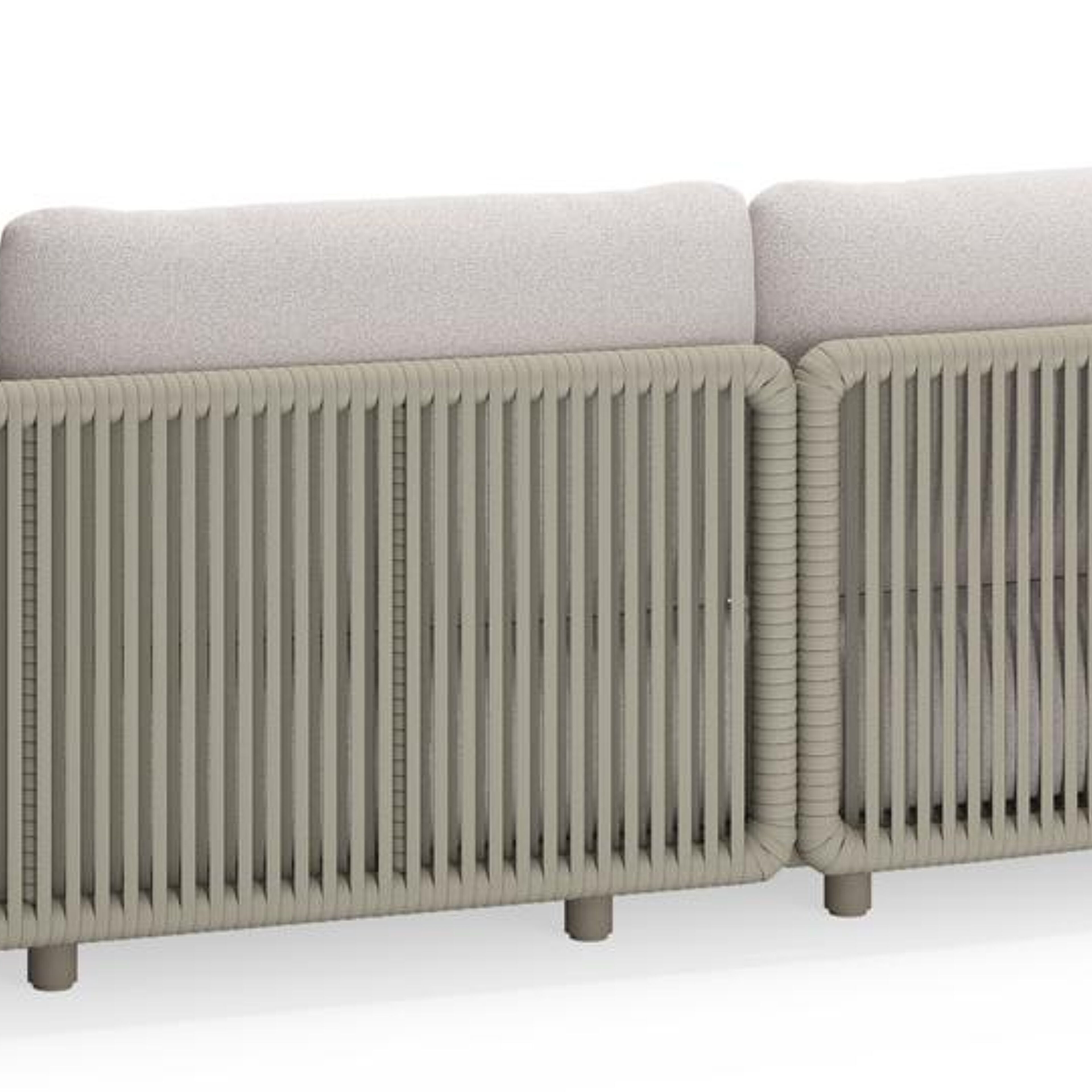 Salon de jardin d'angle Lomano en aluminium beige et corde luxe plate tissée verticalement beige et coussins en all weather solica Ego Eggshell | Exterioo mobilier de jardin