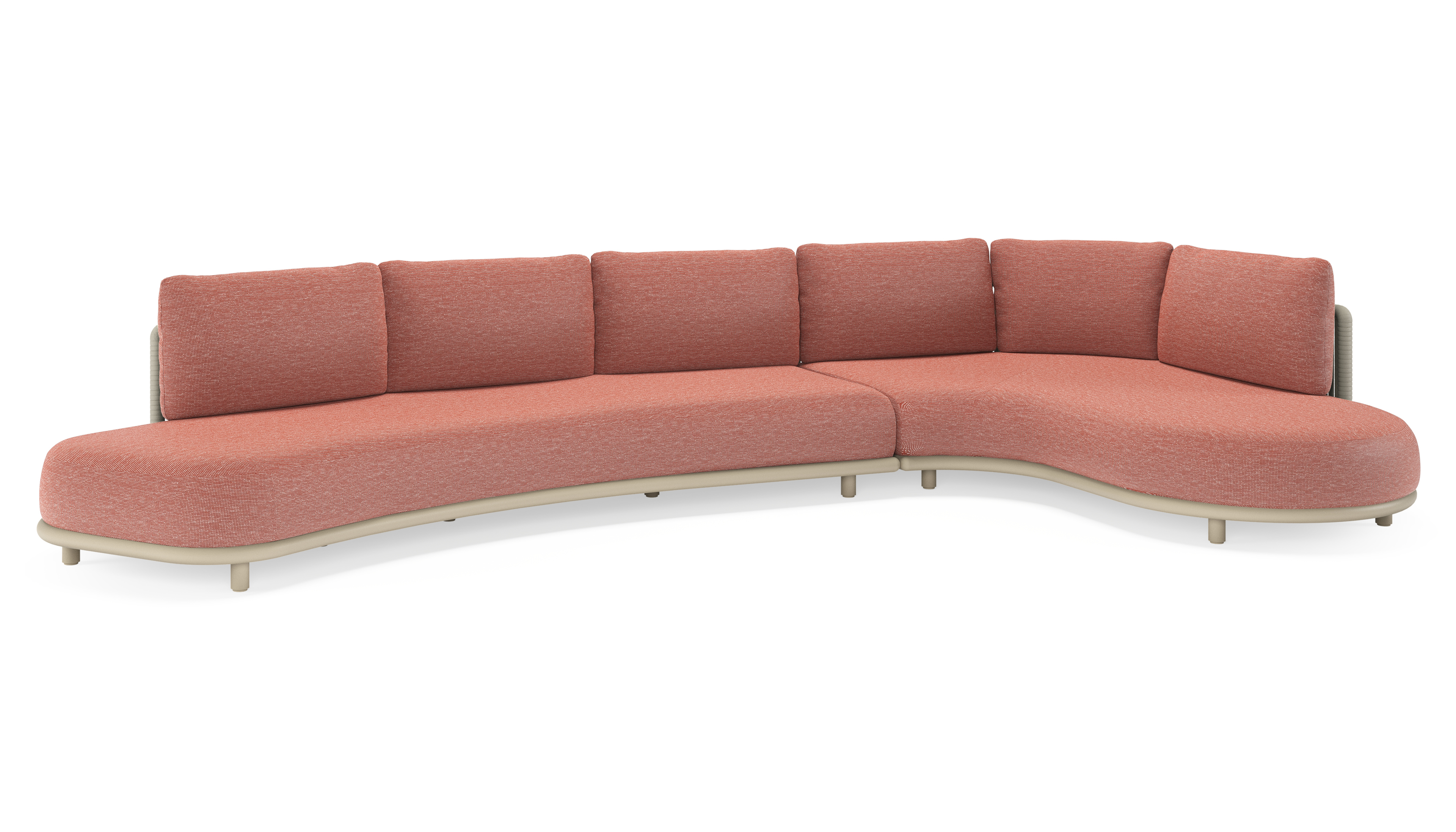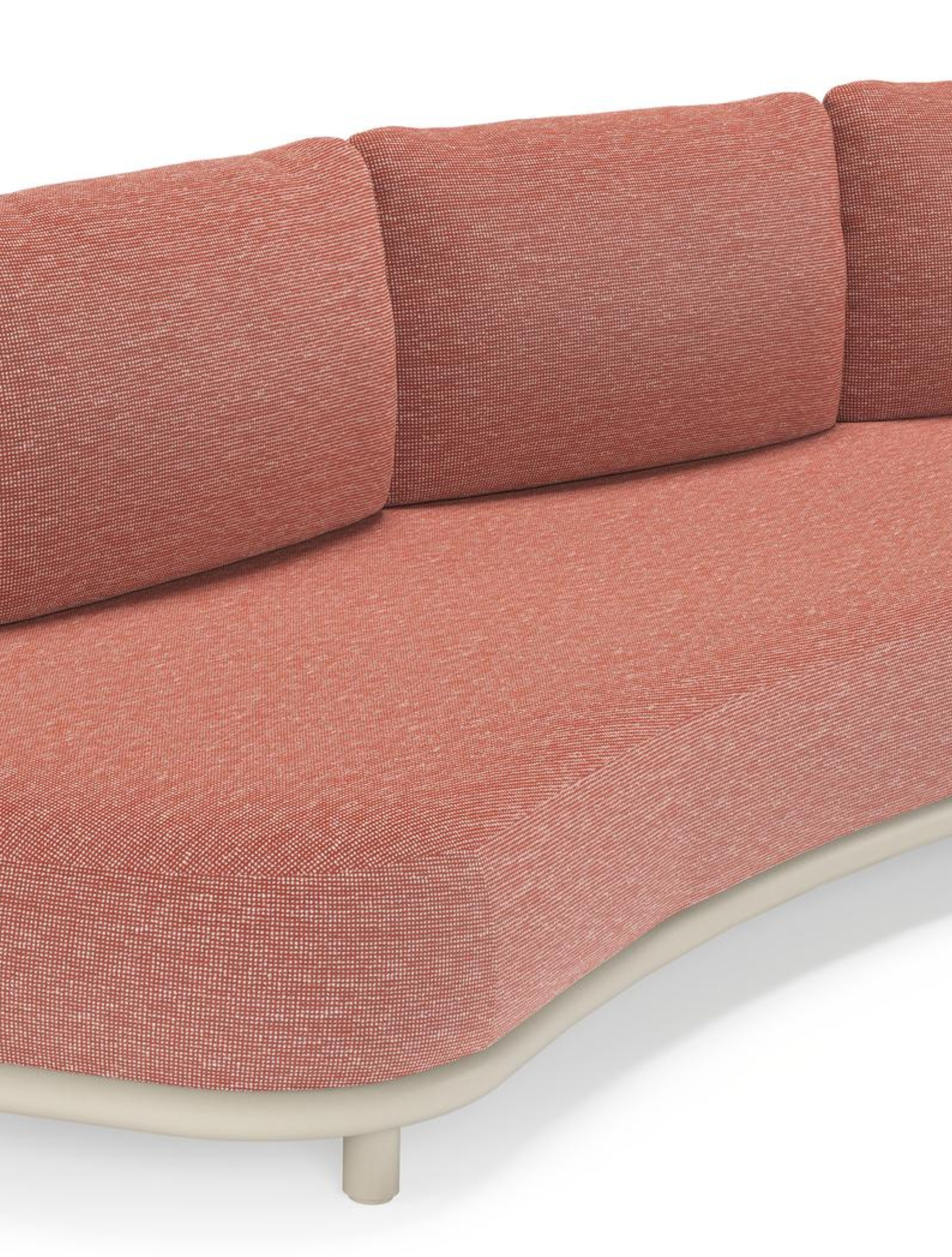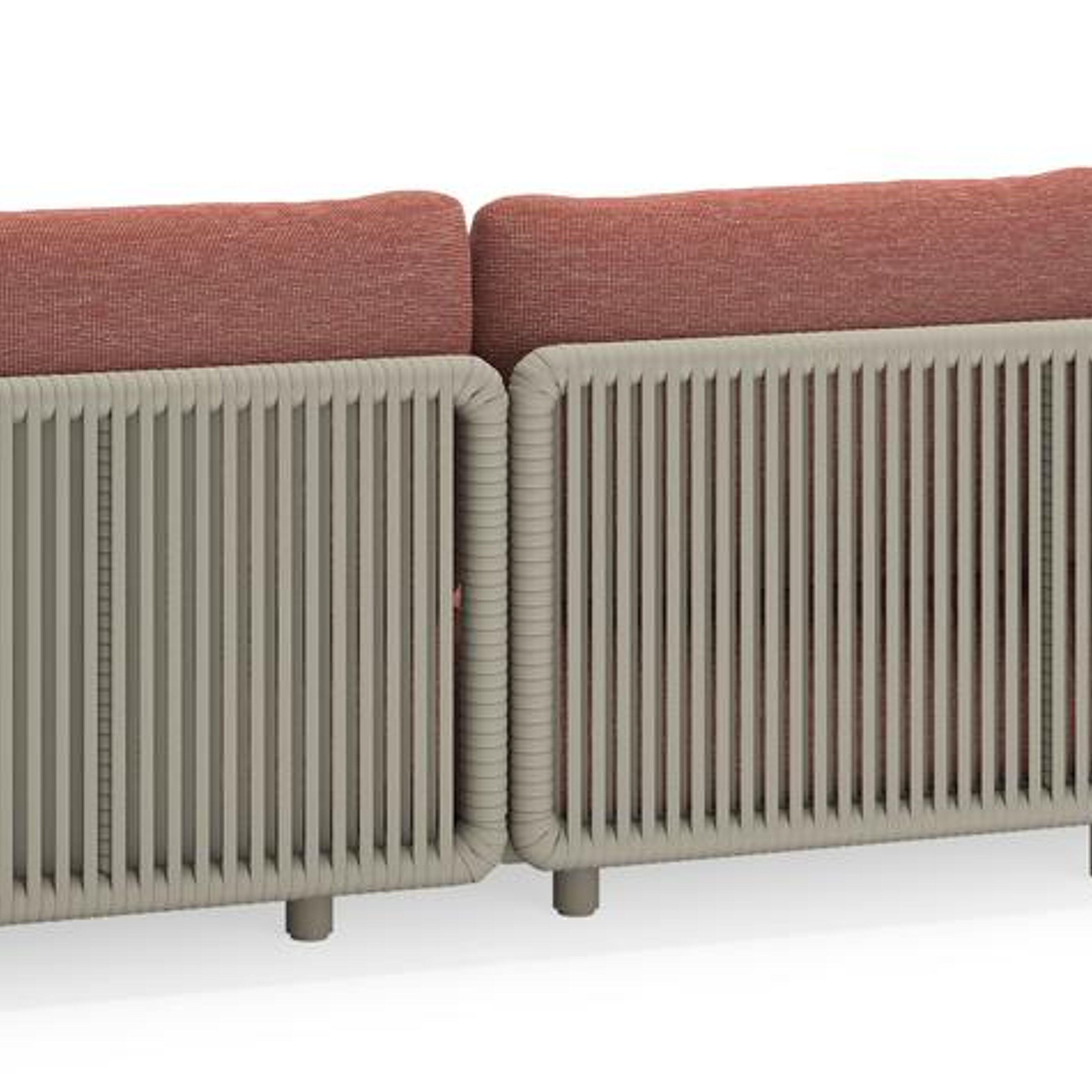 Salon de jardin d'angle Lomano en aluminium beige et corde luxe plate tissée verticalement beige et coussins en all weather sunbrella® luxe Slow Alezan | Exterioo mobilier de jardin