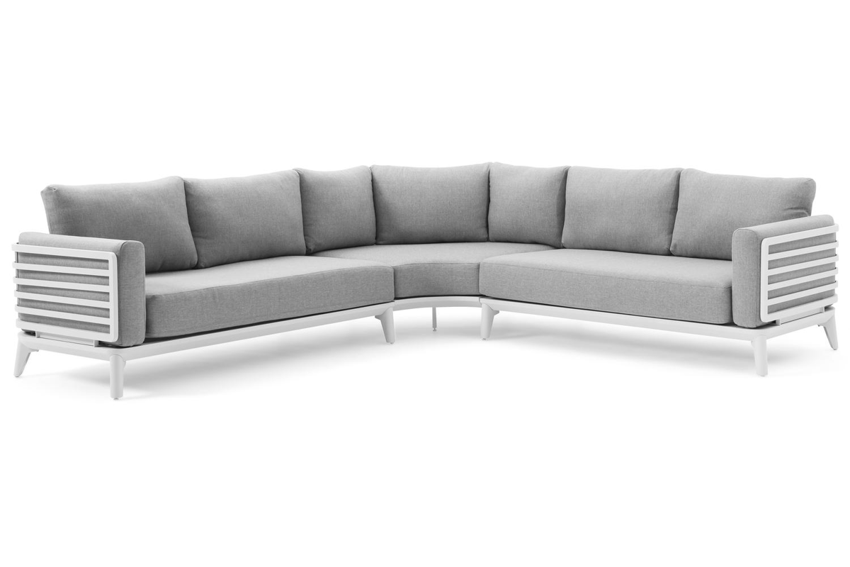 Le salon de jardin d'angle Mosa est un canapé d'intérieur pour L'extérieur. c'est un salon de jardin élégant, avec une armature qui L'entoure complètement. Les accoudoirs sont également pourvus d'un coussin, offrant un soutien supplémentaire. Le salon de jardin présente en outre un angle large, créant une place supplémentaire.