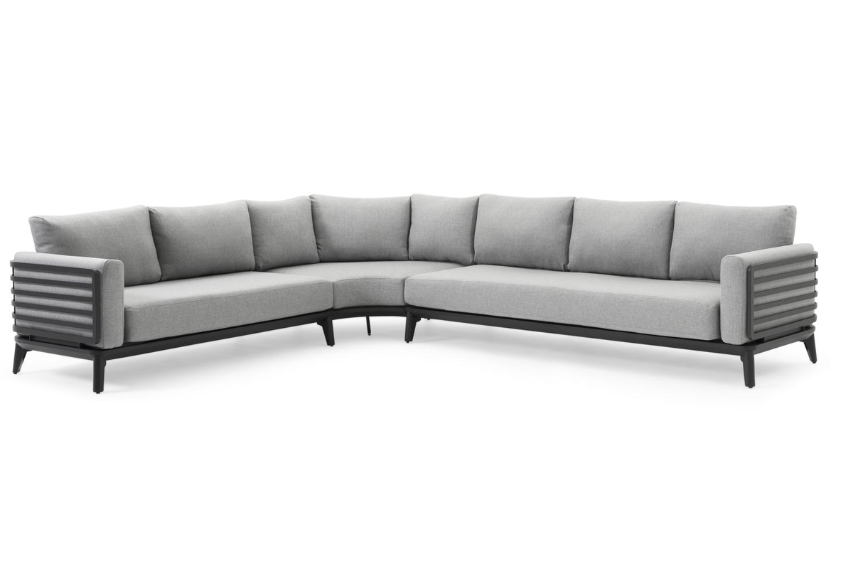 Le salon de jardin d'angle Mosa est un canapé d'intérieur pour L'extérieur. c'est un salon de jardin élégant, avec une armature qui L'entoure complètement. Les accoudoirs sont également pourvus d'un coussin, offrant un soutien supplémentaire. Le salon de jardin présente en outre un angle large, créant une place supplémentaire.