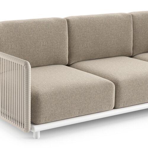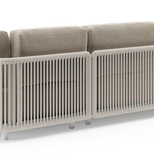 Organo loungehoek in wit aluminium en beige verticaal geweven luxe vlakke rope met chartres pewter all weather sunbrella® luxe kussens | Exterioo