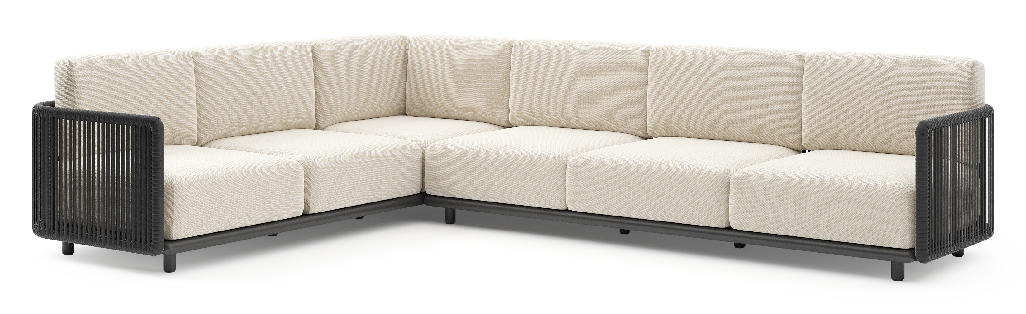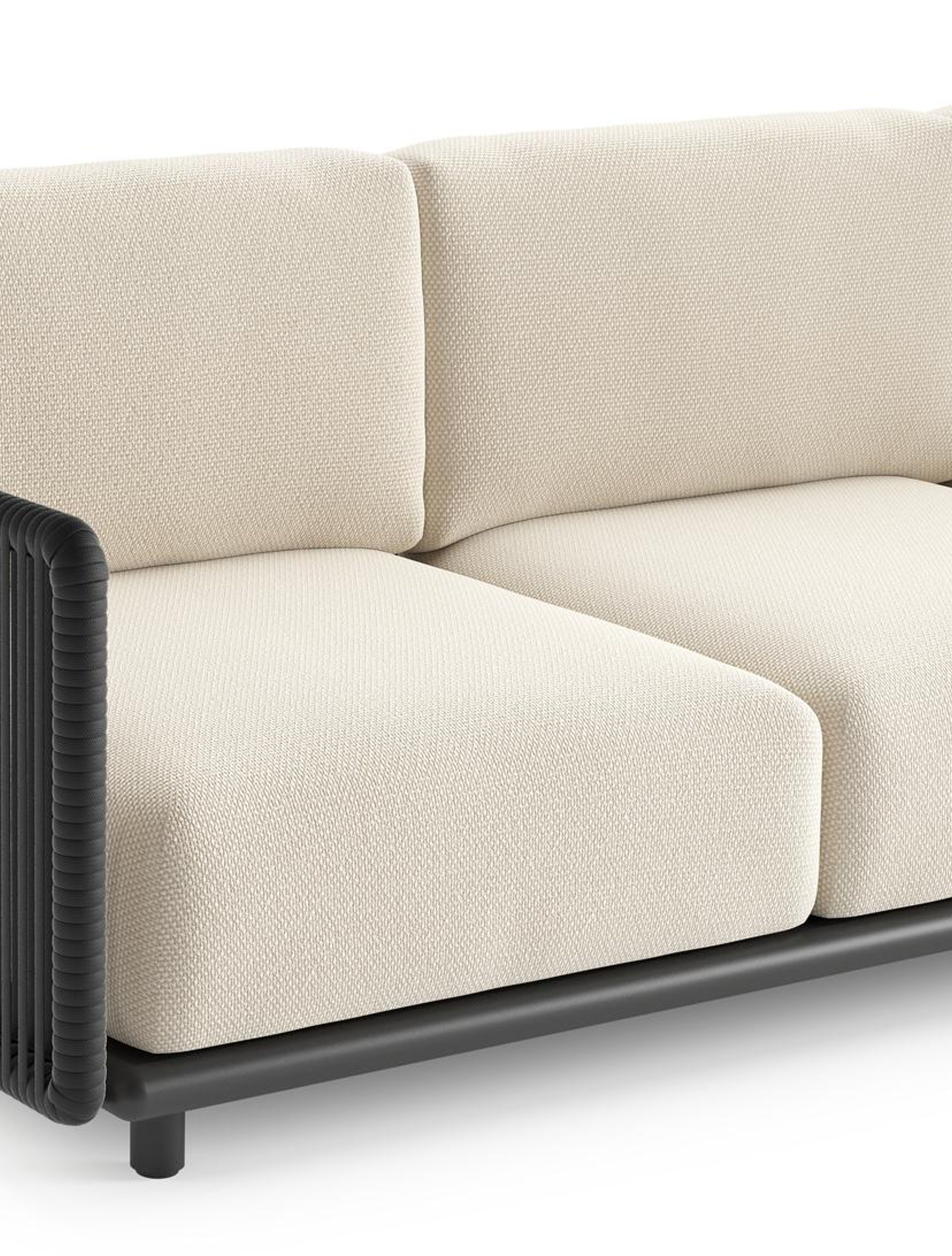 Salon de jardin d'angle Organo en aluminium noir et corde luxe plate tissée verticalement noir et coussin en all weather Cosytica althea off white | Exterioo mobilier de jardin