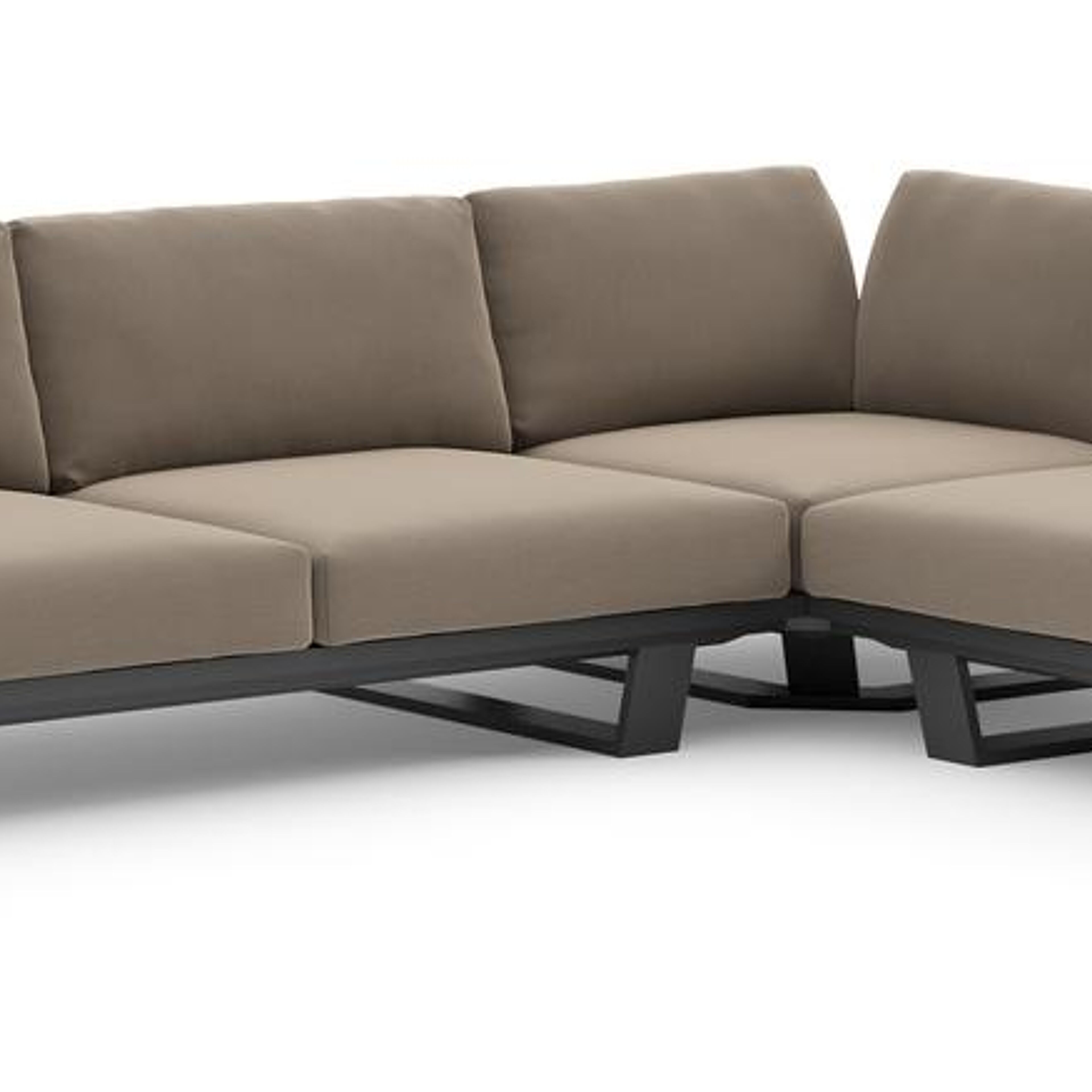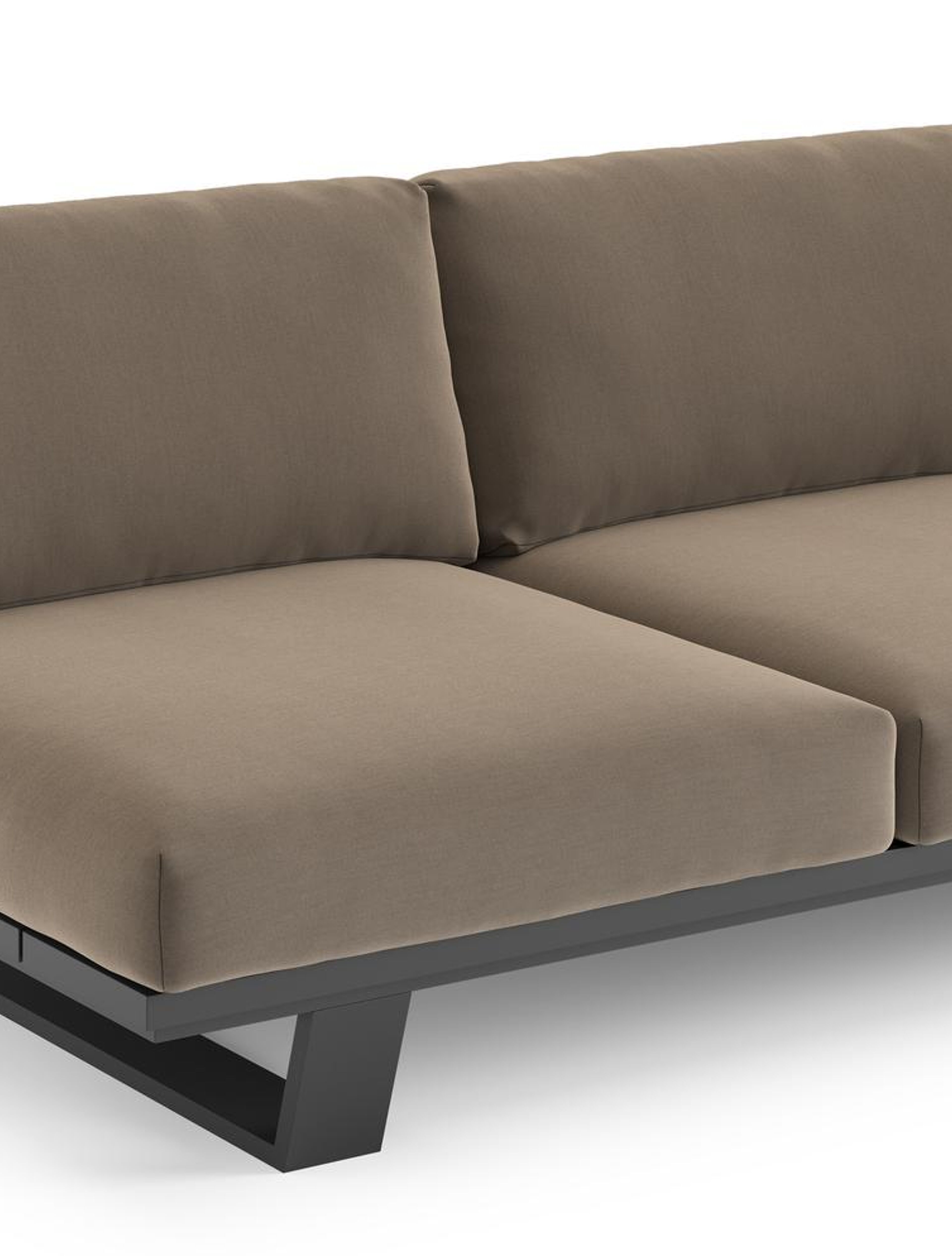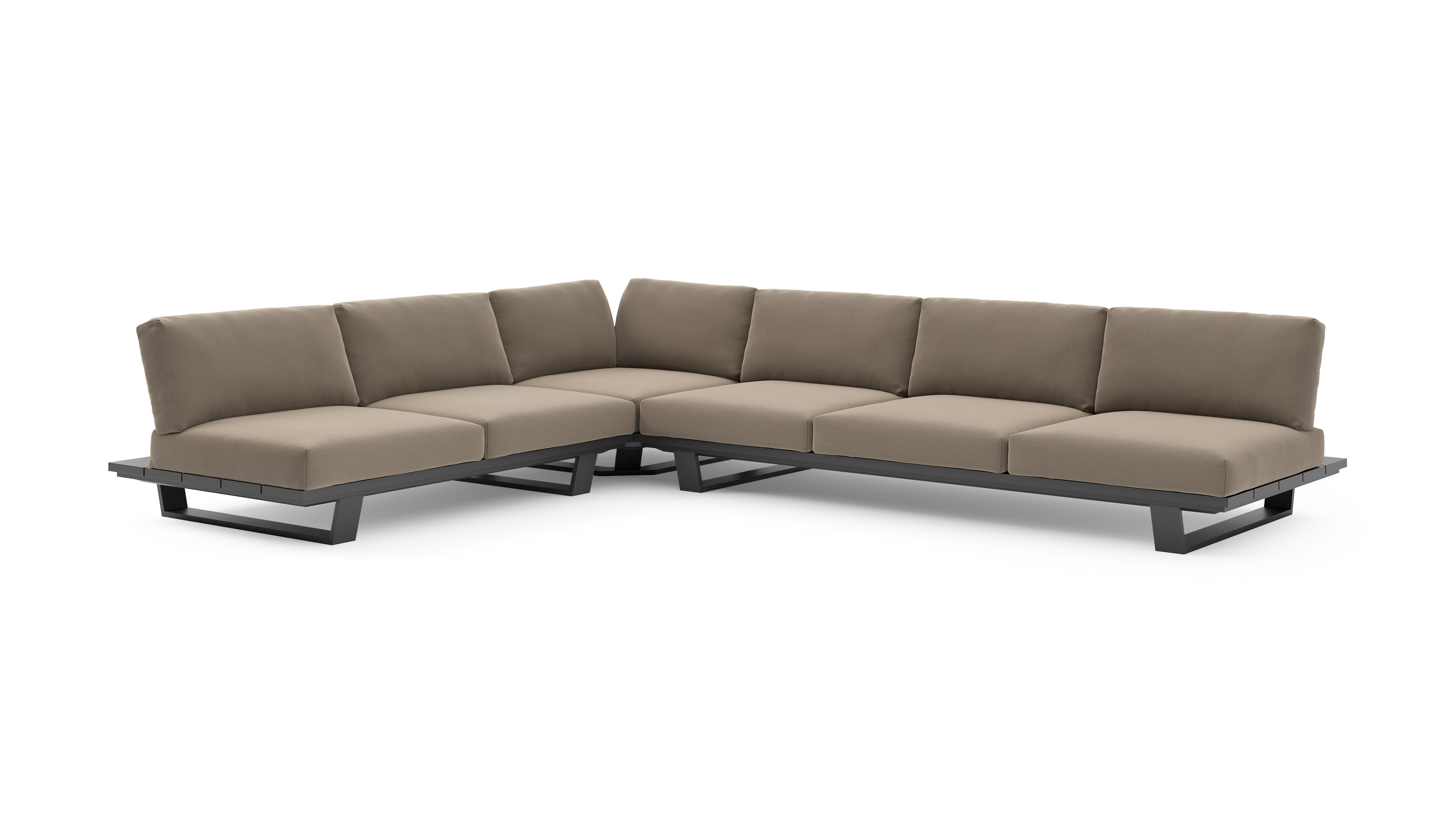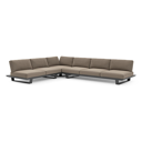 Salon de jardin d'angle Pagino en aluminium noir et coussins en all weather sunbrella® luxe natte heather grey | Exterioo mobilier de jardin