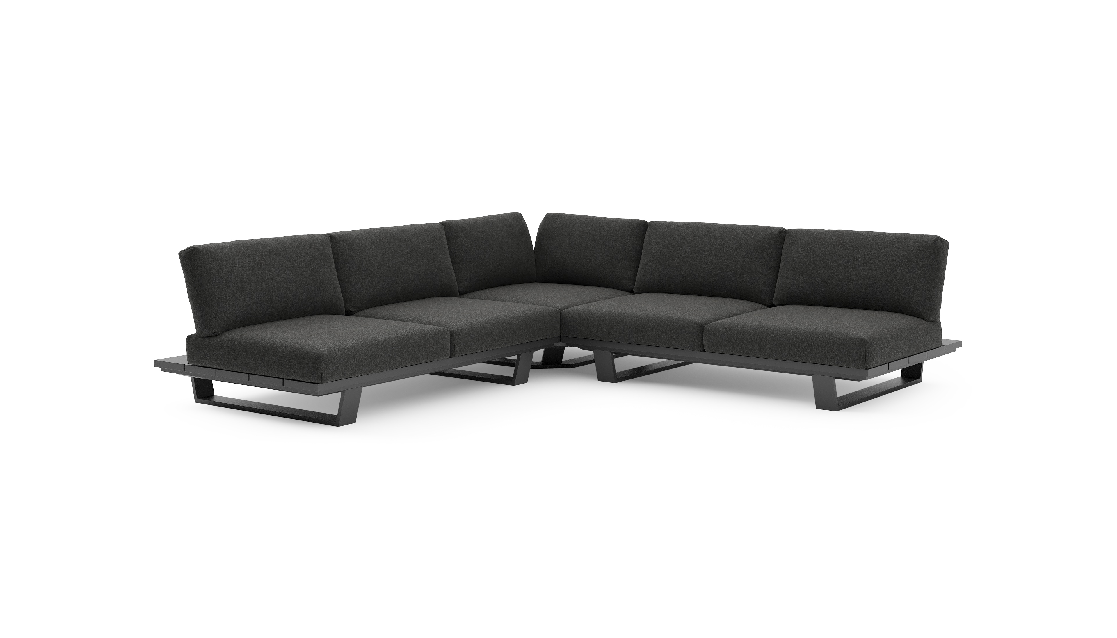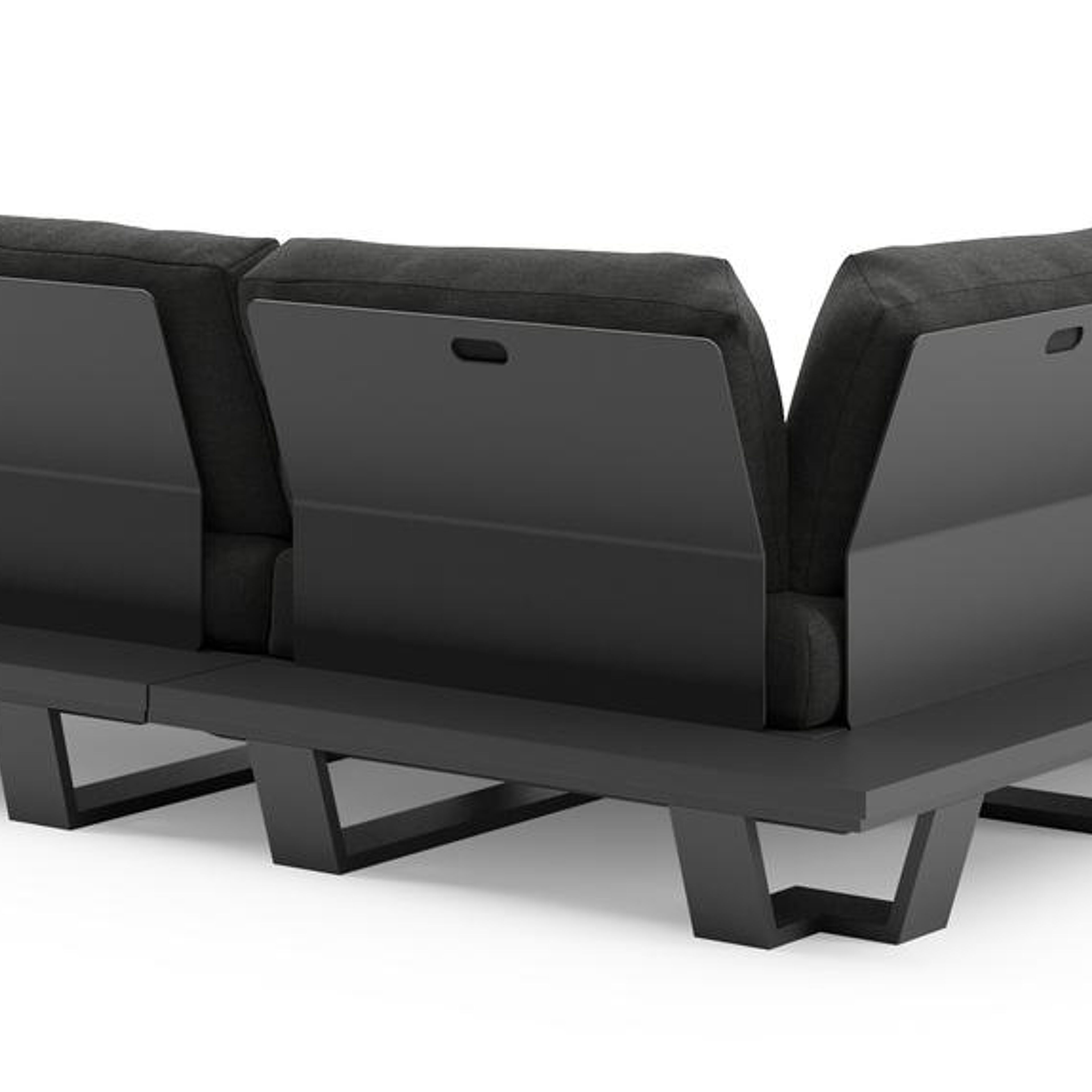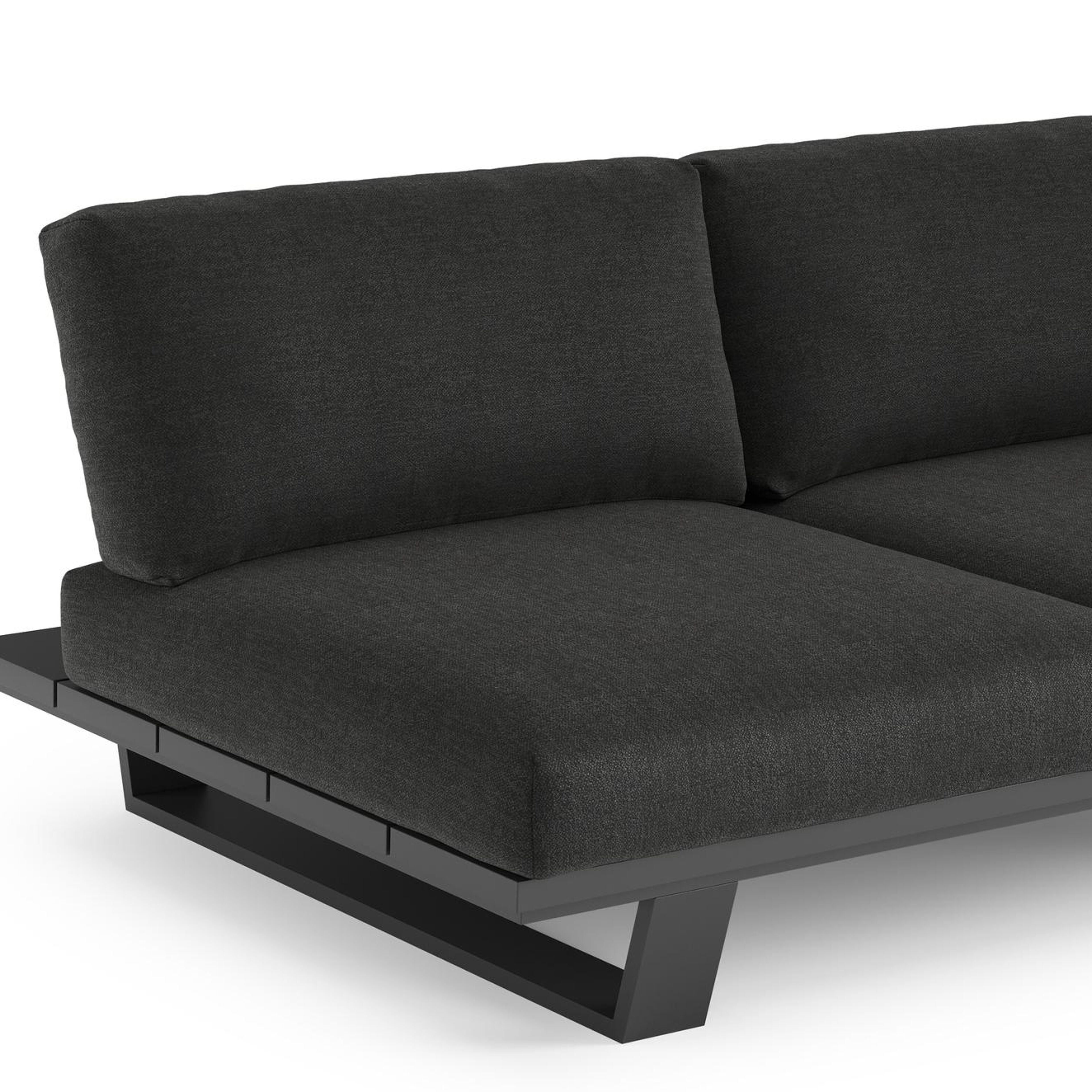 Salon de jardin d'angle Pagino en aluminium noir et coussins en all weather sunbrella® luxe chartres sooty | Exterioo mobilier de jardin