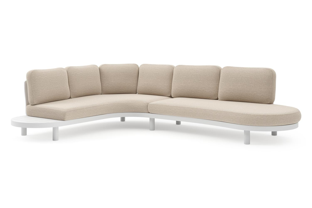 Salon de jardin d'angle Palma en aluminium blanc et coussins en weather+ softtouch rustic | Exterioo