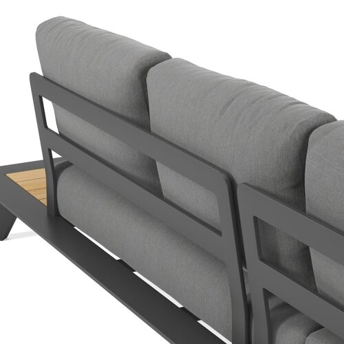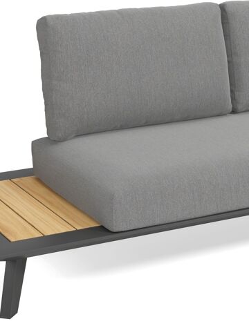 L'armature du salon de jardin est en aluminium inoxydable, un matériau robuste mais léger, qui est facile à déplacer. La surface présente une finition lisse, de sorte qu’elle n'attire pas la saleté et est facile à entretenir. Le revêtement poudré garantit la résistance aux UV et aux intempéries de votre meuble.Les tables d'appoint en teck sont synonymes de qualité exceptionnelle et de design naturel. Le teck est une essence de qualité qui se caractérise par sa dureté. Le bois étant un un matériau vivant, sa structure ou sa couleur peuvent légèrement varier.