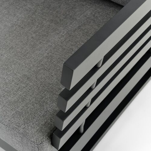 L’armature du salon de jardin est en aluminium inoxydable, un matériau robuste mais léger, qui est facile à déplacer. La surface présente une finition lisse, de sorte qu’elle n’attire pas la saleté et est facile à entretenir. Le revêtement poudré garantit la résistance aux UV et aux intempéries de votre meuble.