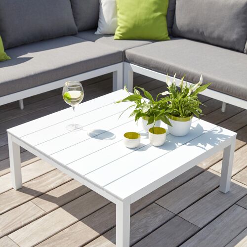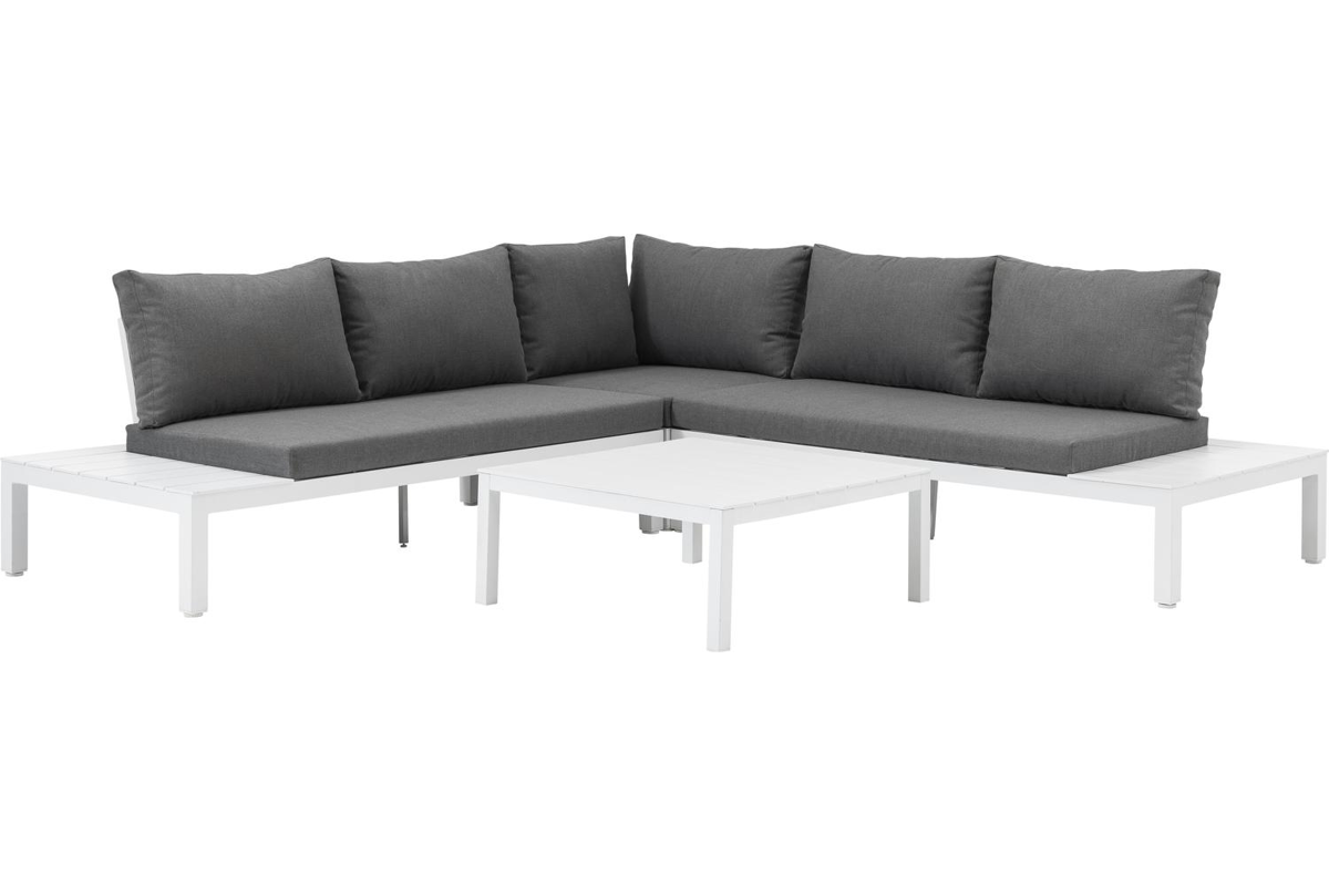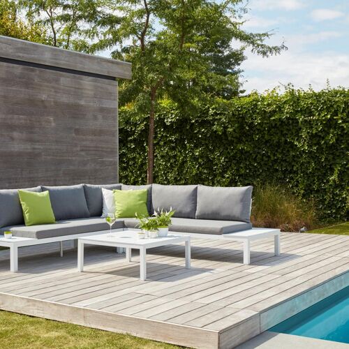 L'armature du salon de jardin est en aluminium inoxydable, un matériau robuste mais léger, qui est facile à déplacer. La surface présente une finition lisse, de sorte qu’elle n'attire pas la saleté et est facile à entretenir. Le revêtement poudré garantit la résistance aux UV et aux intempéries de votre meuble.