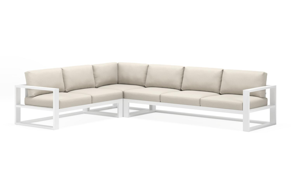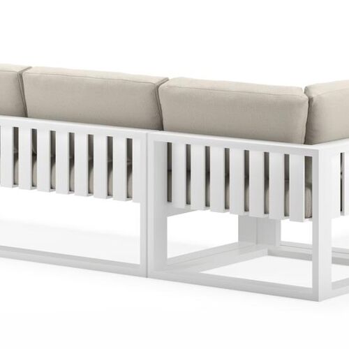 Salon de jardin d'angle Verato en aluminium blanc et coussins en all weather sunbrella® luxe lopi marble | Exterioo