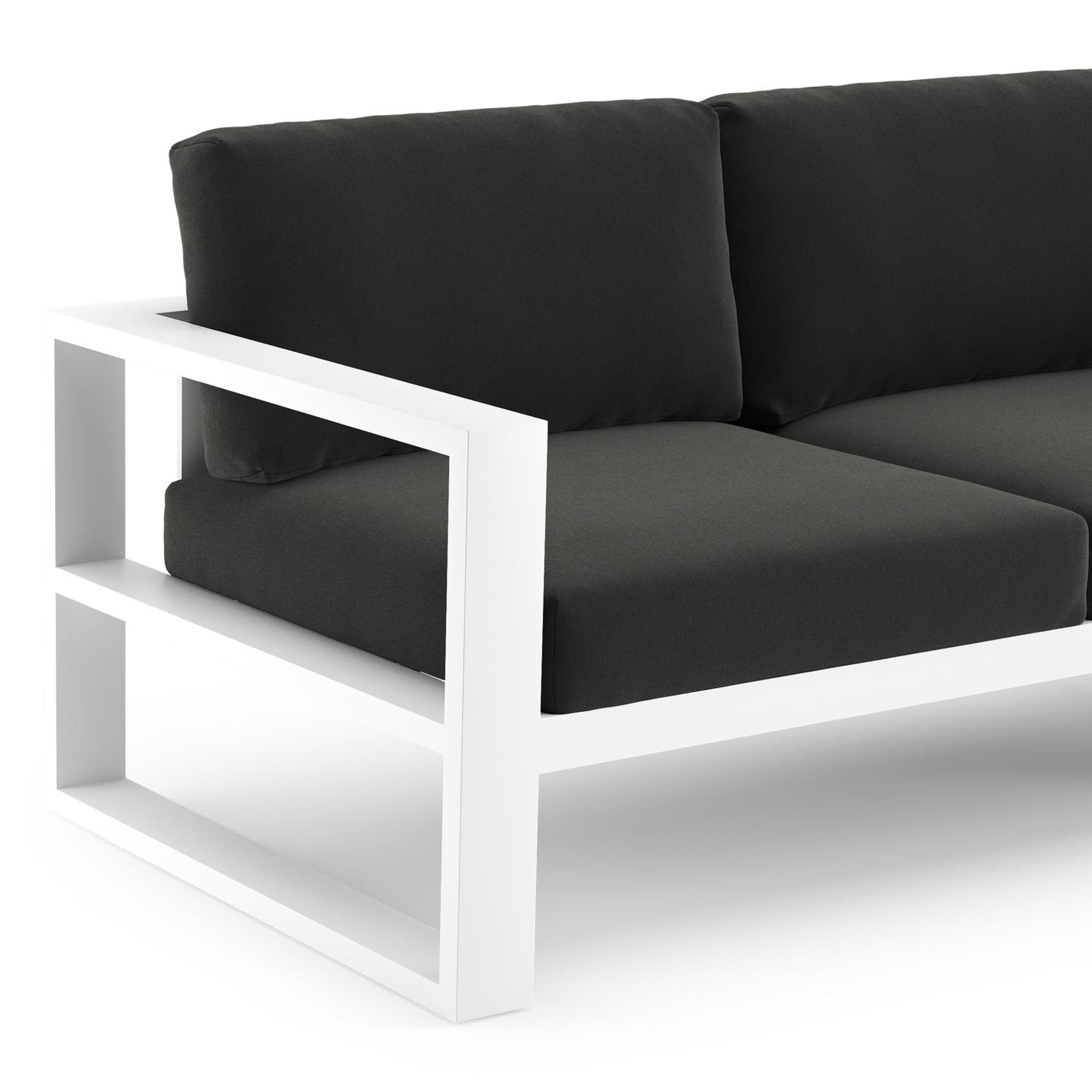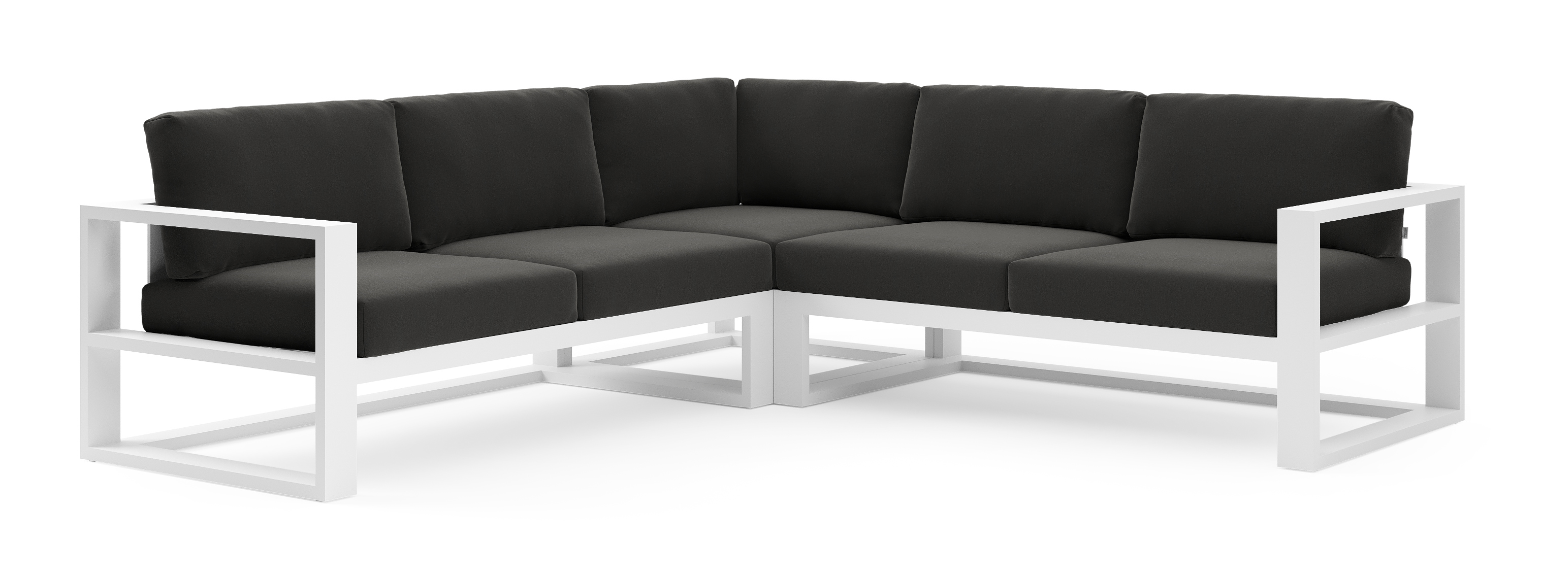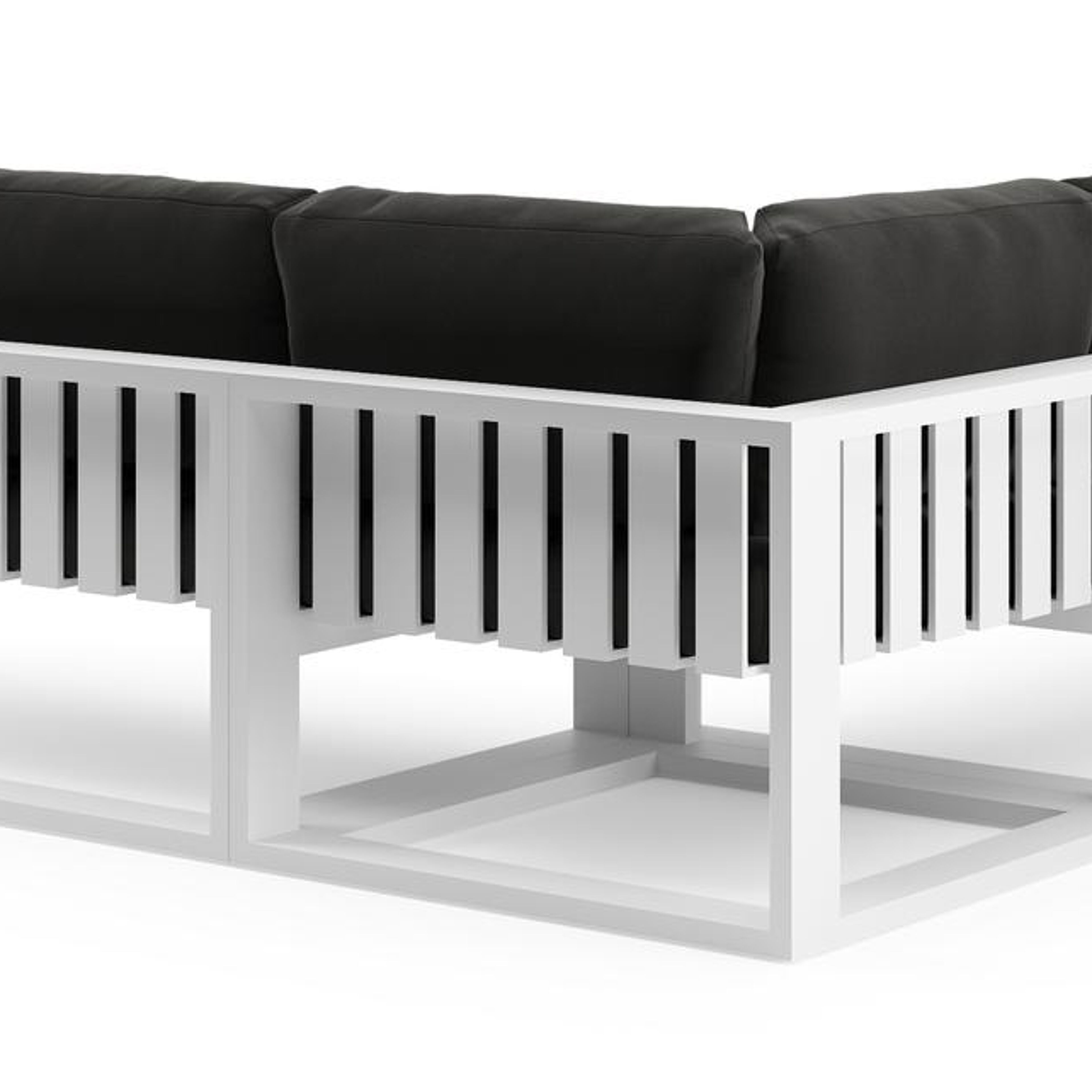 Salon de jardin d'angle Verato en aluminium blanc et coussins en all weather sunbrella® luxe natte sooty | Exterioo mobilier de jardin