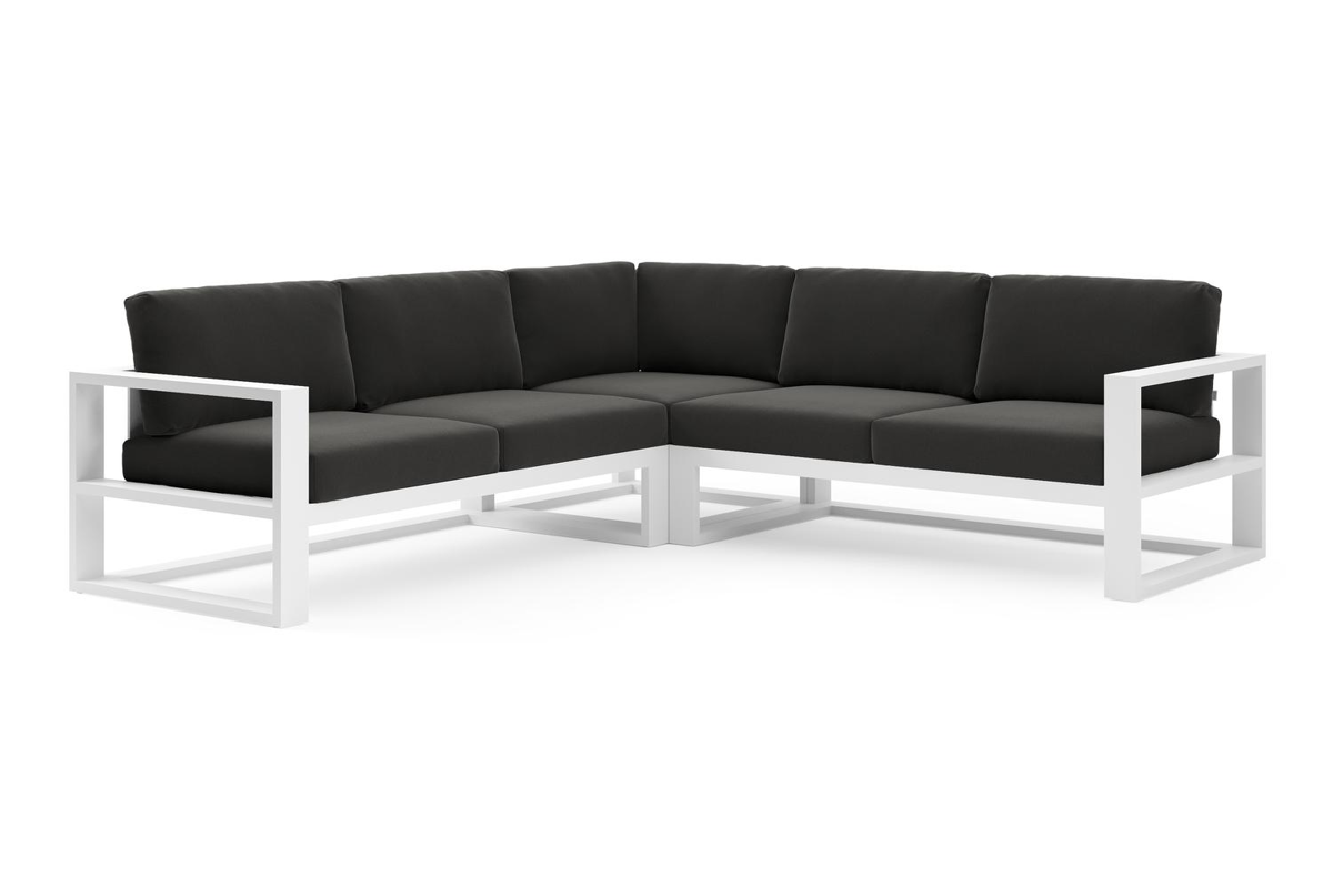 Salon de jardin d'angle Verato en aluminium blanc et coussins en all weather sunbrella® luxe natte sooty | Exterioo