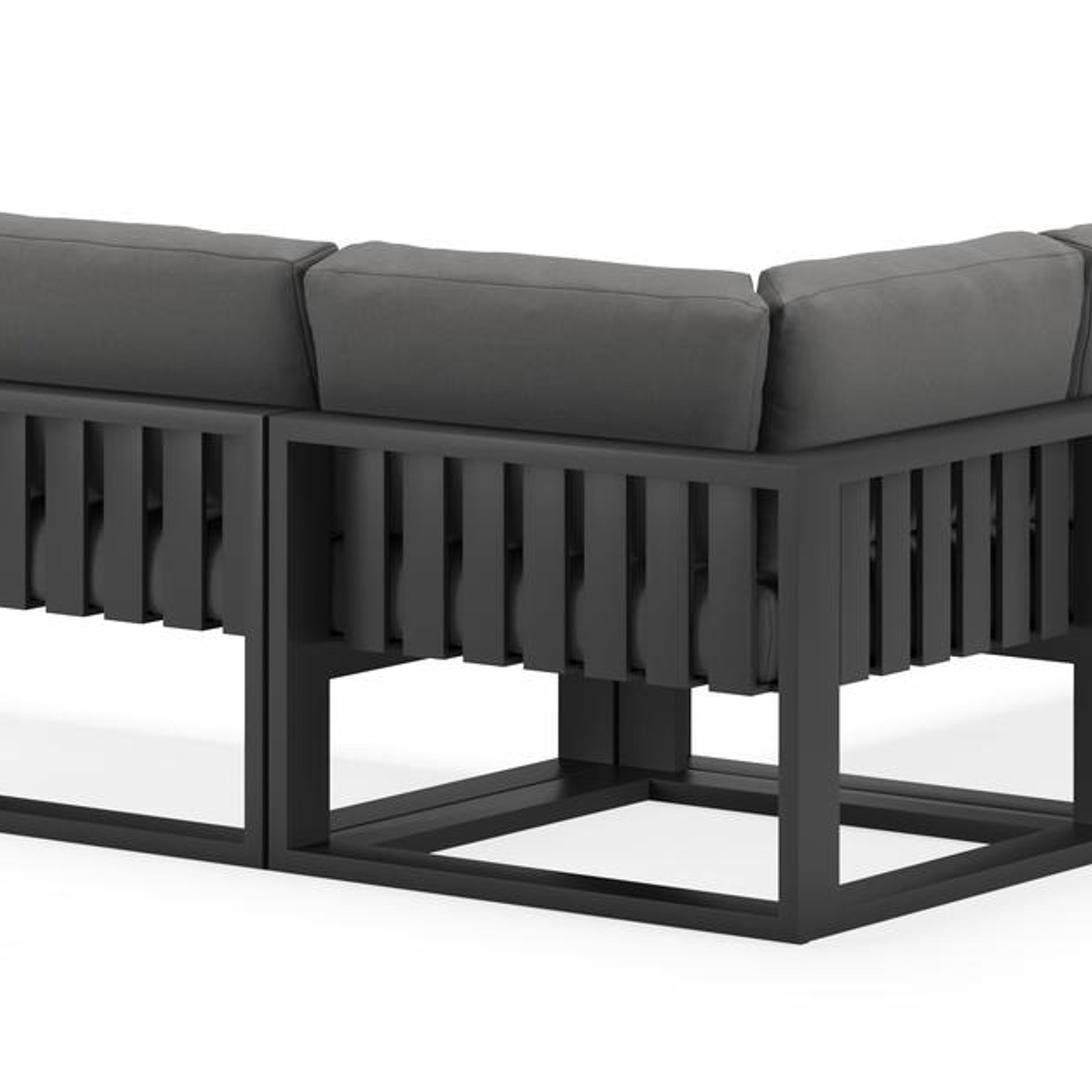 Verato loungehoek in zwart aluminium met natte charcoal chine all weather sunbrella® luxe kussens | Exterioo mobilier de jardin
