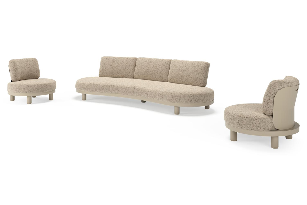 Salon de jardin Donato en aluminium beige et coussins en all weather cosytica Bora Jungle | Exterioo