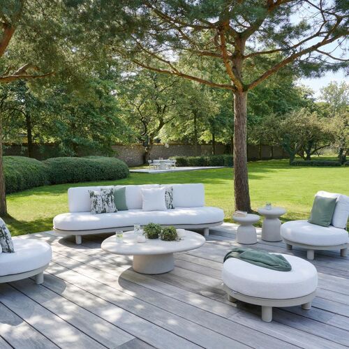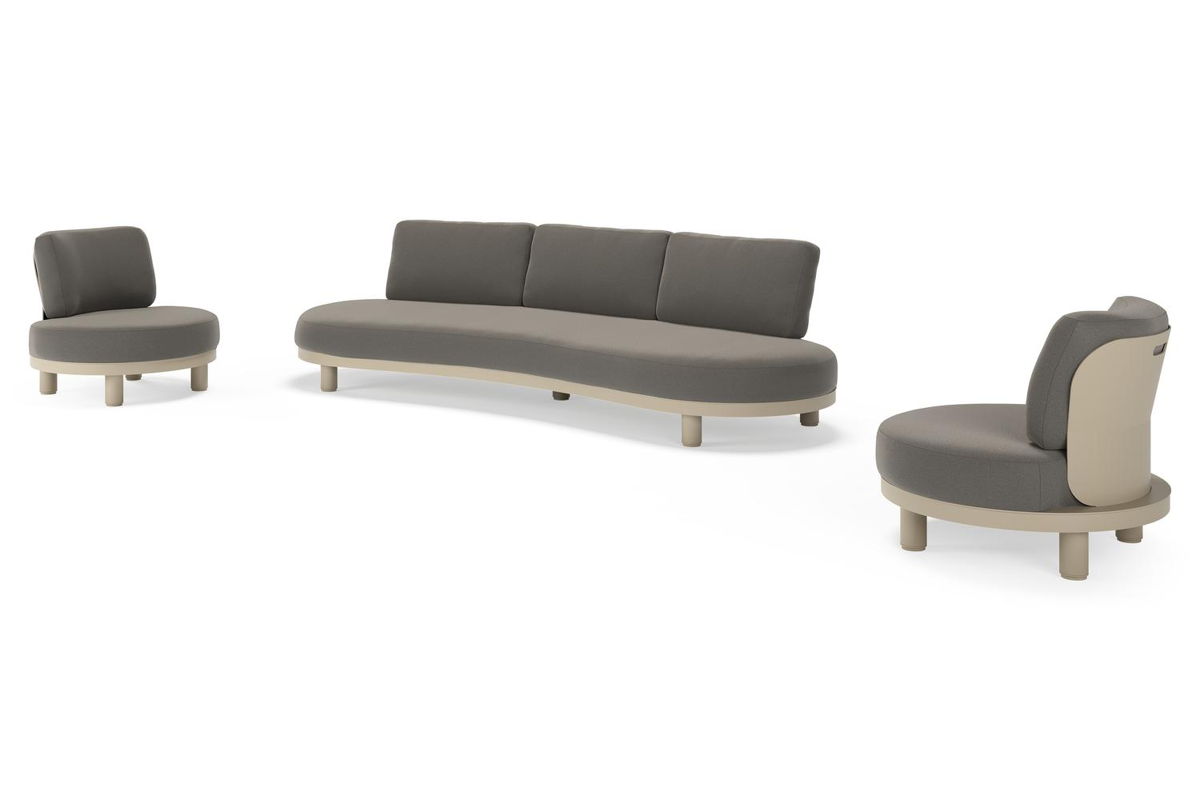 Salon de jardin Donato en aluminium beige et coussins en all weather sunbrella® luxe Natte Dark Taupe | Exterioo