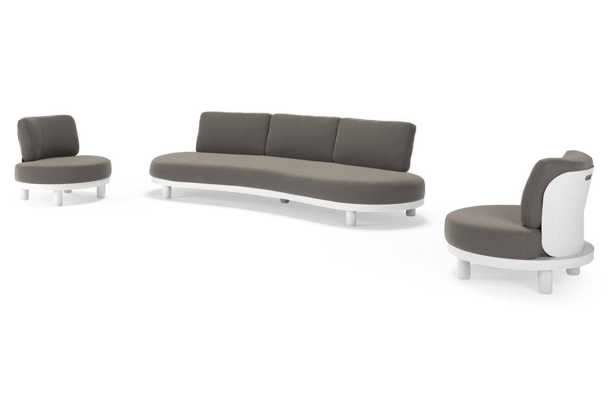 Salon de jardin Donato en aluminium blanc et coussins en all weather sunbrella® luxe Natte Dark Taupe | Exterioo
