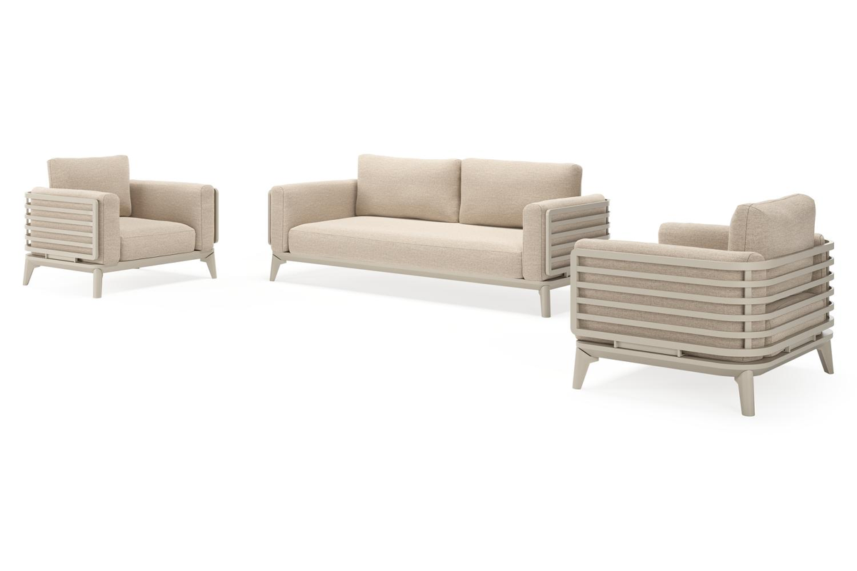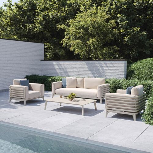 Salon de jardin Mosa en aluminium beige avec coussins en weather+ softtouch rustic | Exterioo