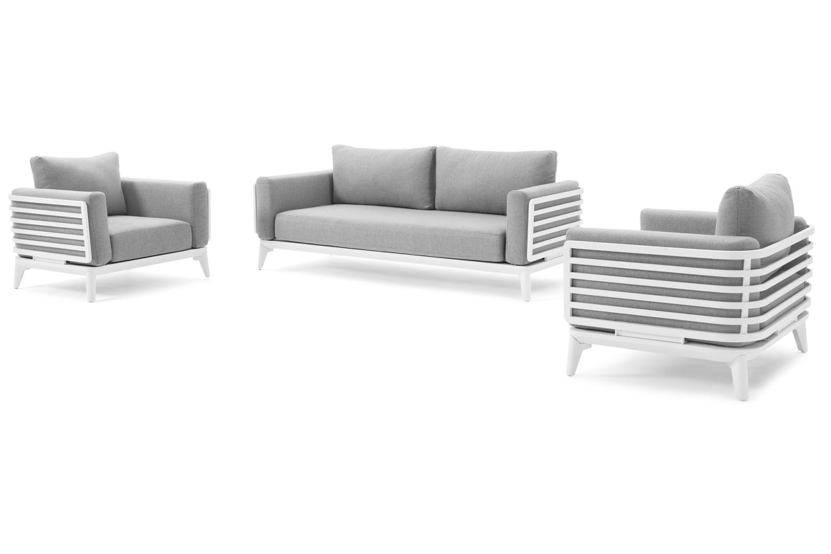 Le salon de jardin Mosa est un canapé d'intérieur pour L'extérieur. c'est un salon de jardin élégant, avec une armature qui L'entoure complètement. Les accoudoirs sont également pourvus d'un coussin, offrant un soutien supplémentaire. Le salon de jardin présente en outre un angle large, créant une place supplémentaire.
