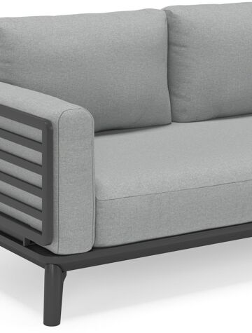 Le Mosa est un canapé d’intérieur pour l’extérieur. C’est un salon de jardin élégant, avec une armature qui l’entoure complètement. Les accoudoirs sont également pourvus d’un coussin, offrant un soutien supplémentaire.