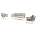 Salon de jardin Orso en aluminium beige en corde luxe plate tissée verticalement beige et coussins en all weather sunbrella® luxe Heritage Ash | Exterioo mobilier de jardin