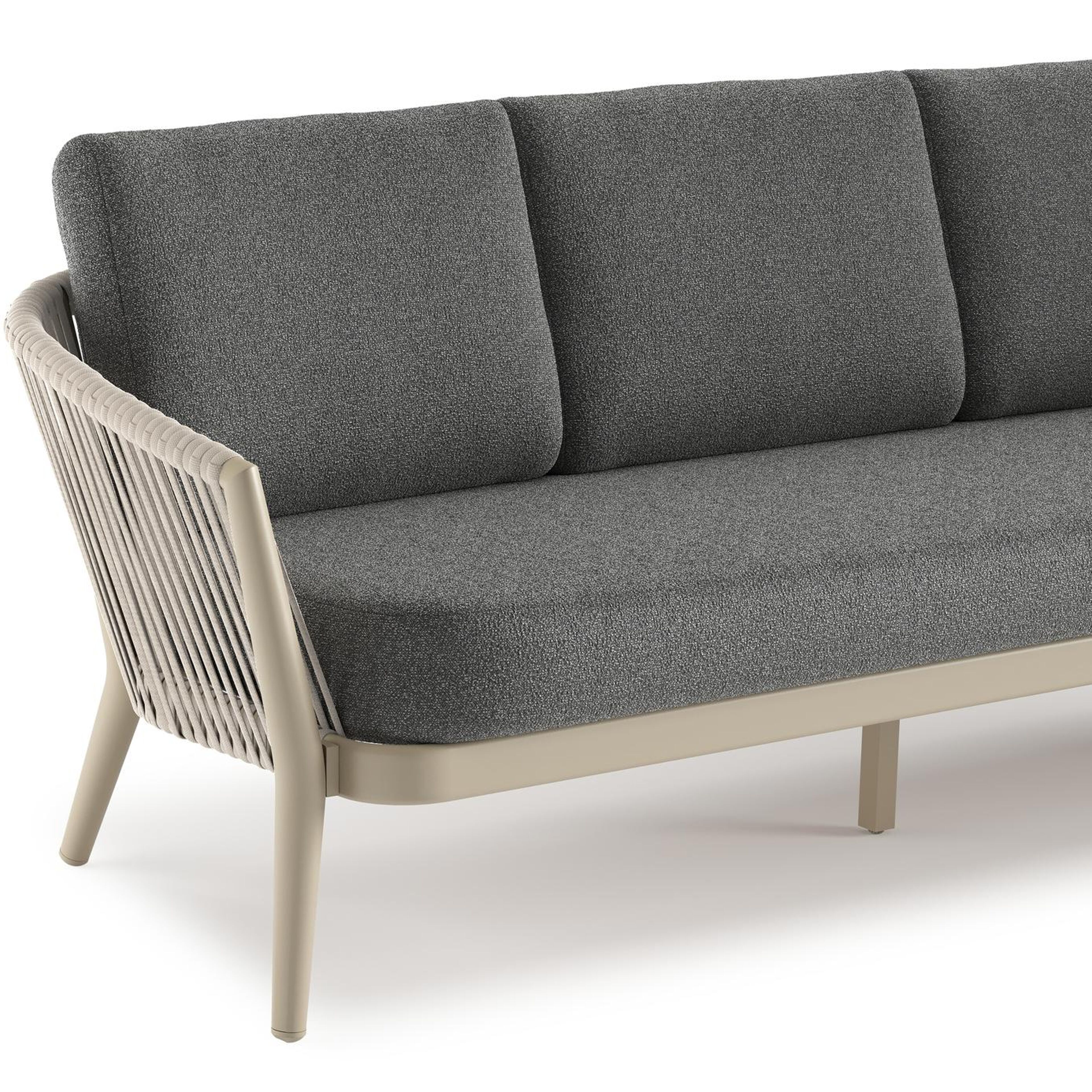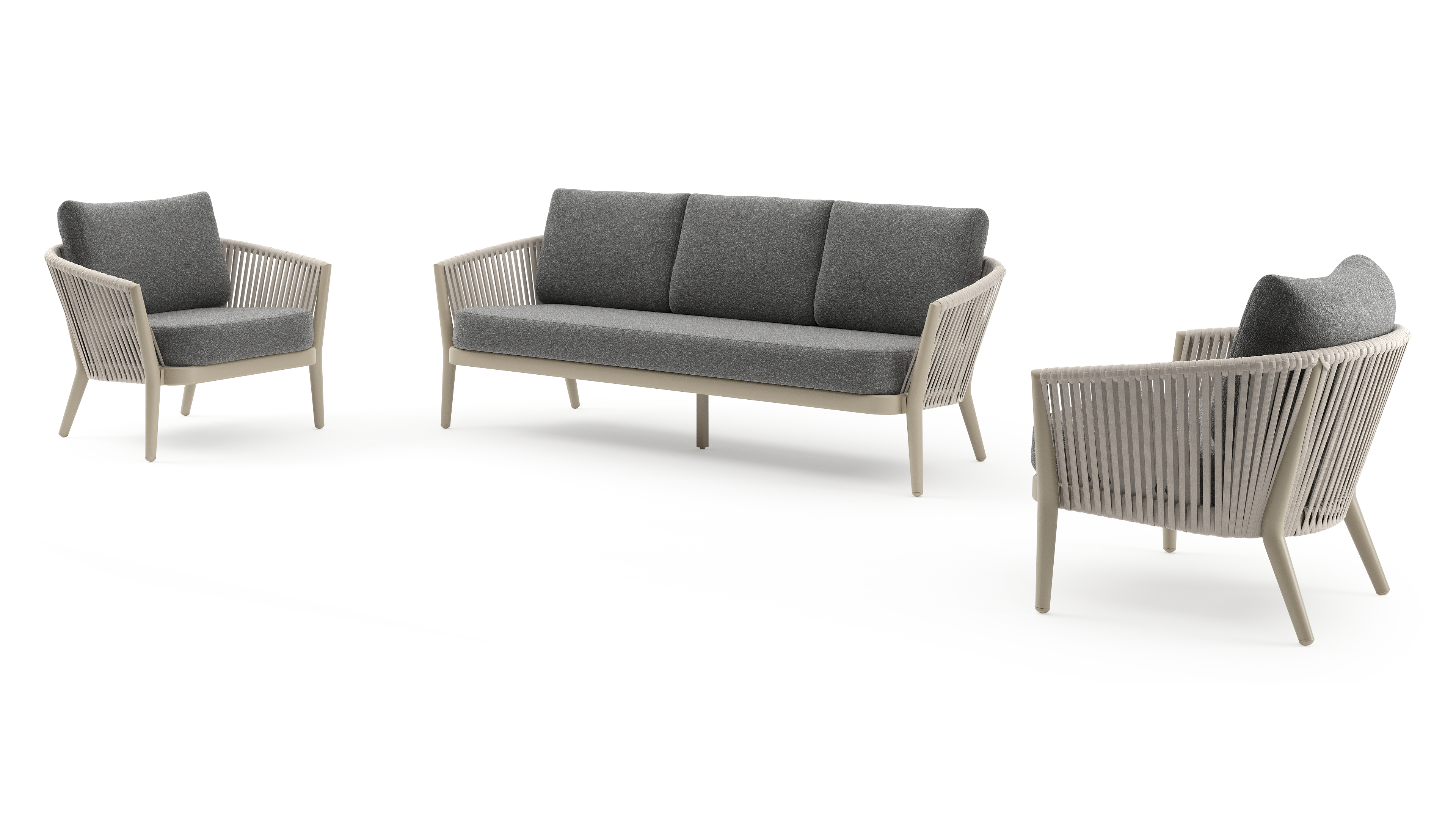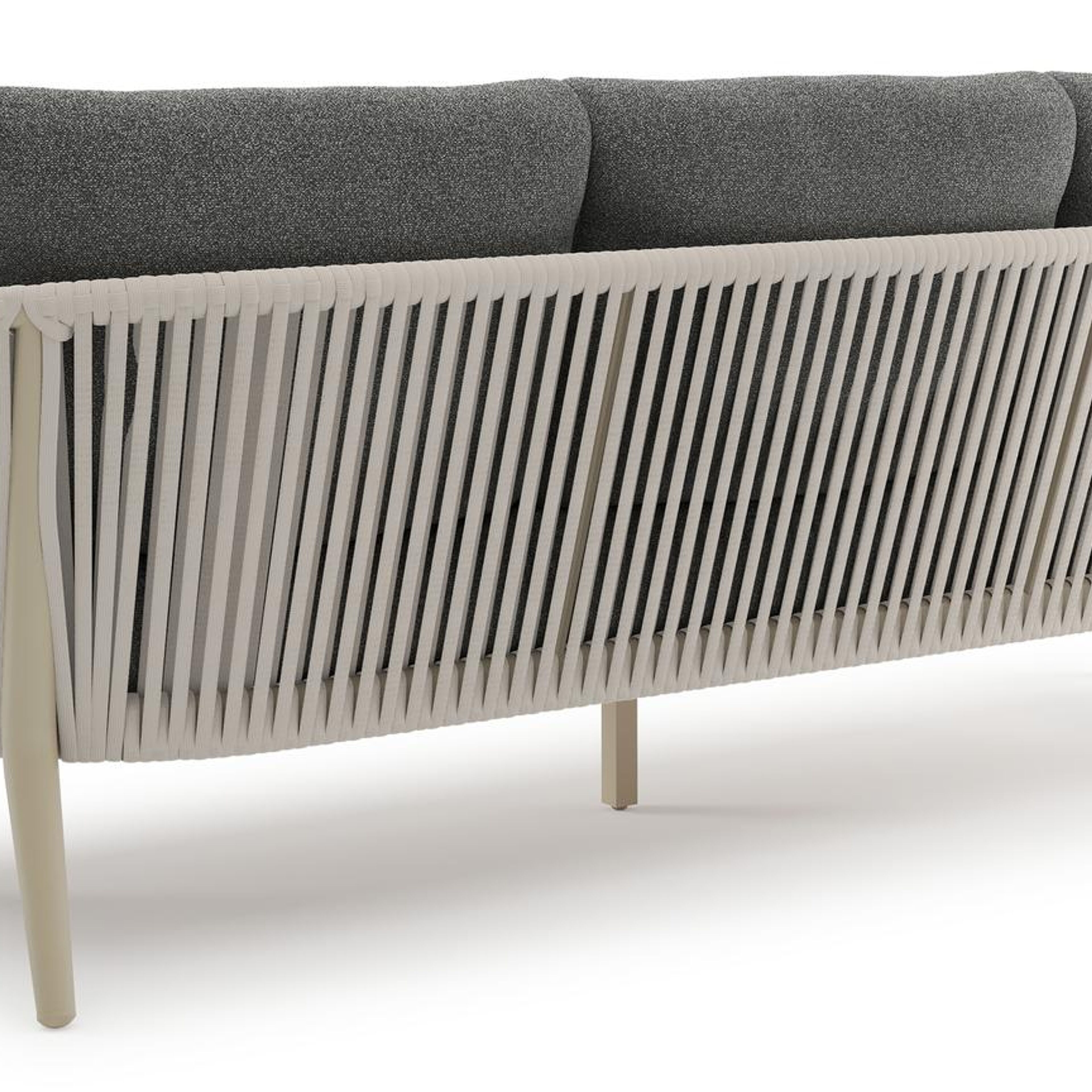 Salon de jardin Orso en aluminium beige en corde luxe plate tissée verticalement beige et coussins en all weather cosytica Catania Black | Exterioo mobilier de jardin