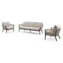 Salon de jardin Orso en aluminium blanc en corde ronde tissée verticalement beige et coussins en all weather sunbrella® luxe Tundra Sand | Exterioo mobilier de jardin