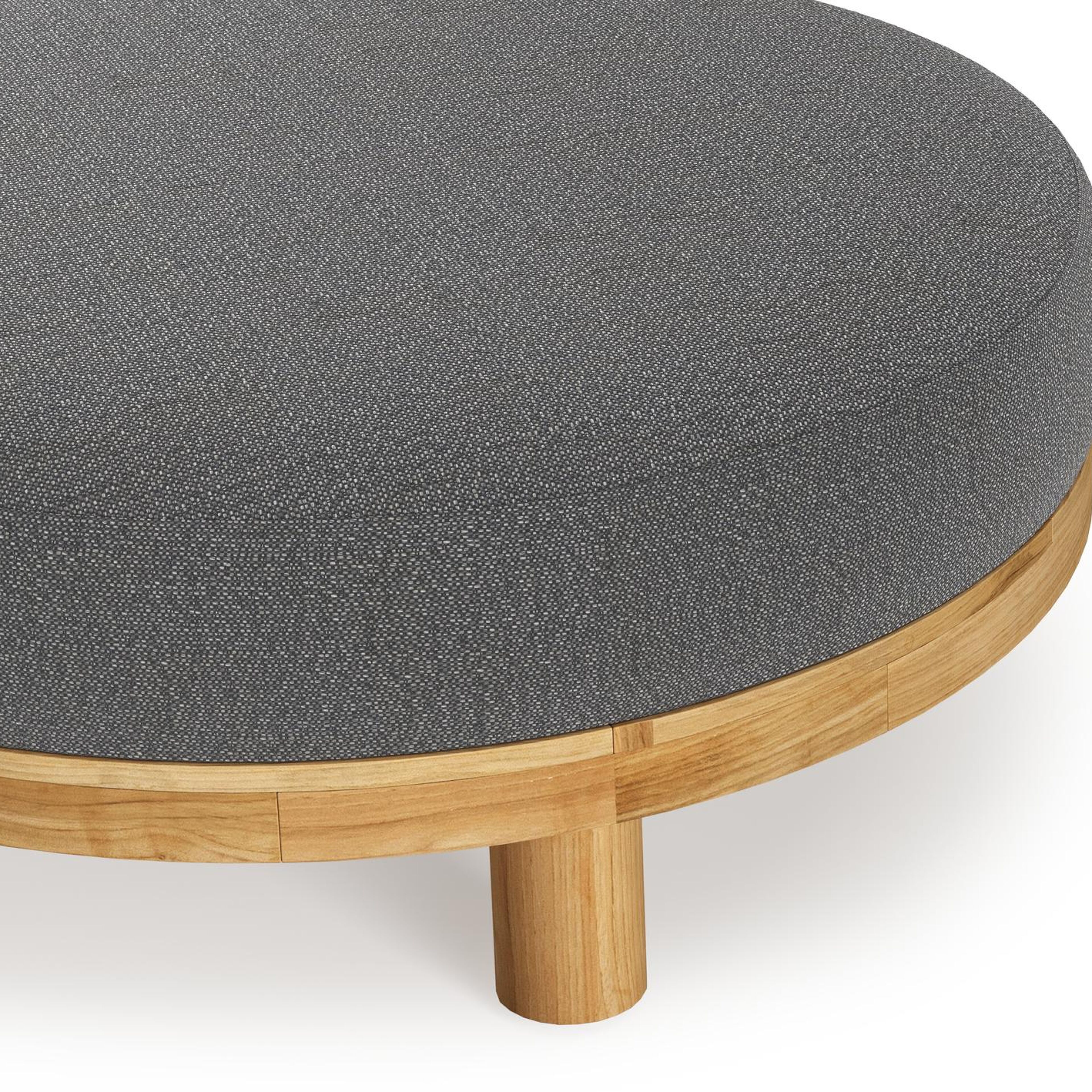 Salon de jardin pouf Donato en teck et corde ronde tissée verticalement beige et coussins en all weather sunbrella® luxe Savane Tornado | Exterioo mobilier de jardin