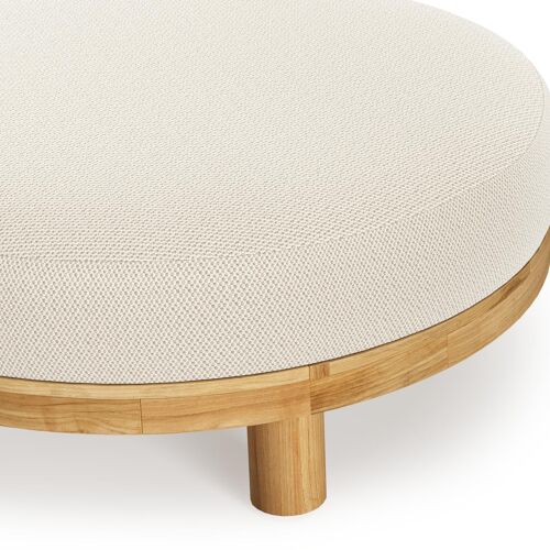 Salon de jardin pouf Donato en teck et corde ronde tissée verticalement beige et coussins en all weather sunbrella® luxe Lopi Marble | Exterioo