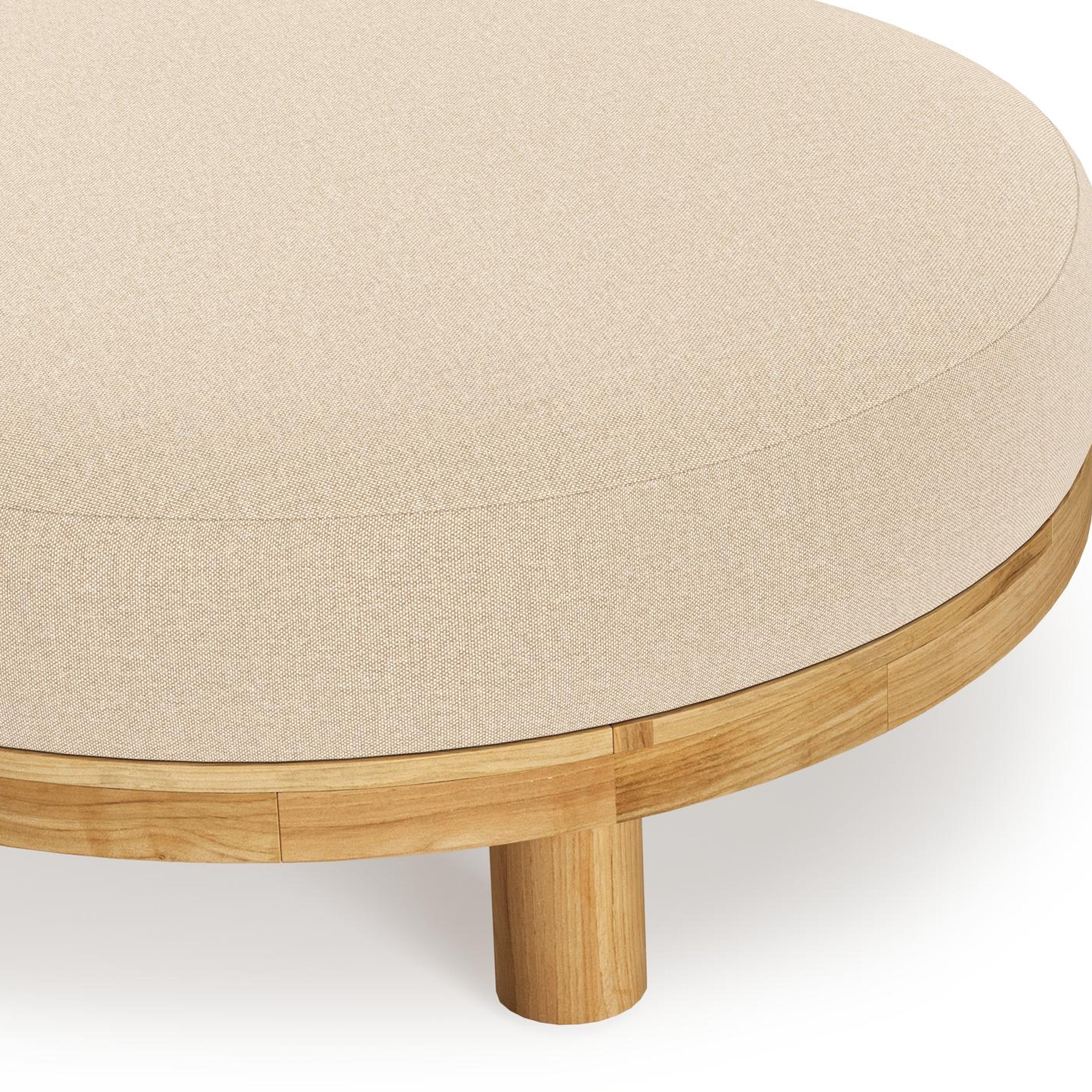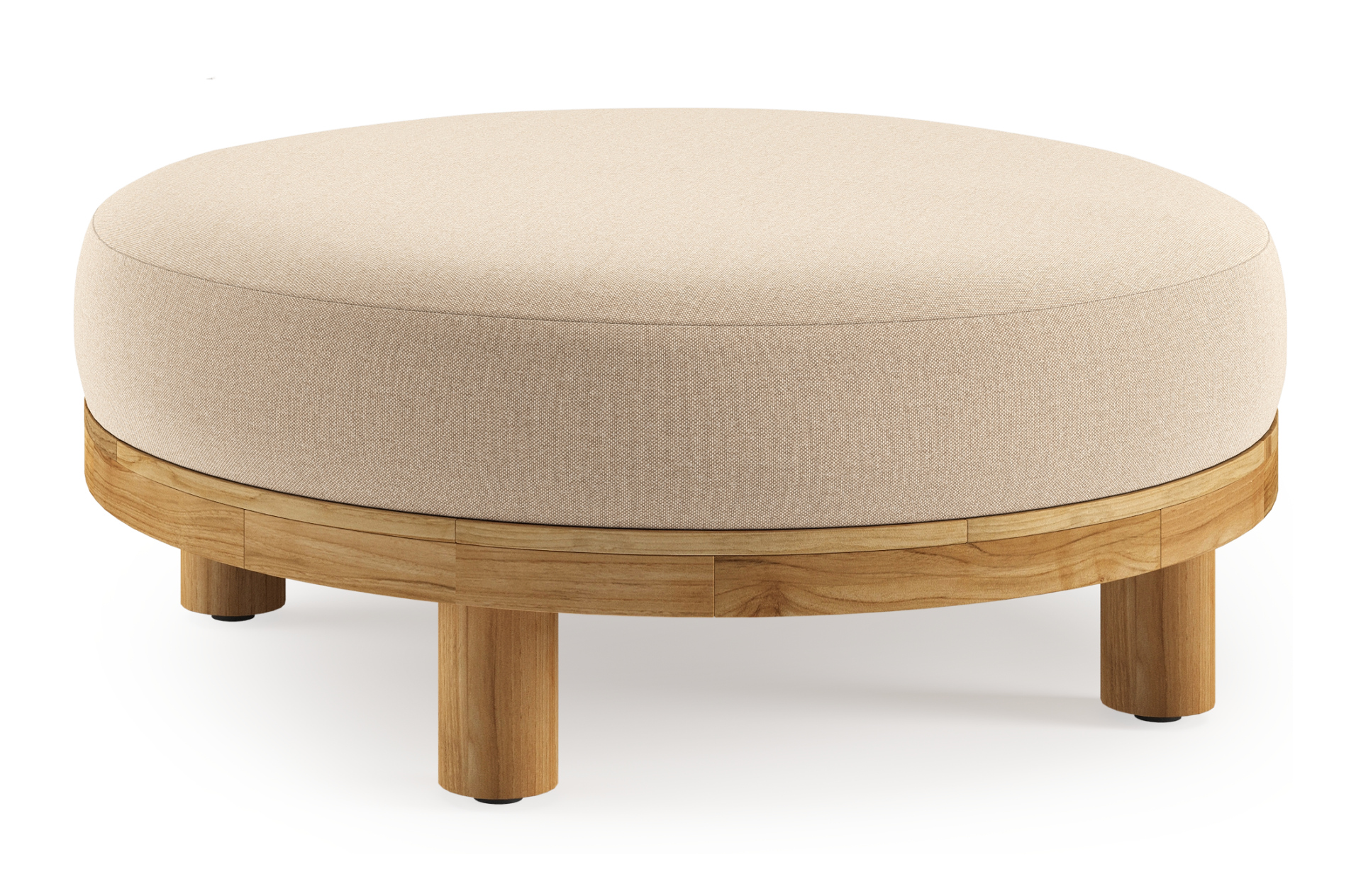 Salon de jardin pouf Donato en teck et corde ronde tissée verticalement beige et coussins en all weather sunbrella® luxe Natte Heather Beige | Exterioo mobilier de jardin