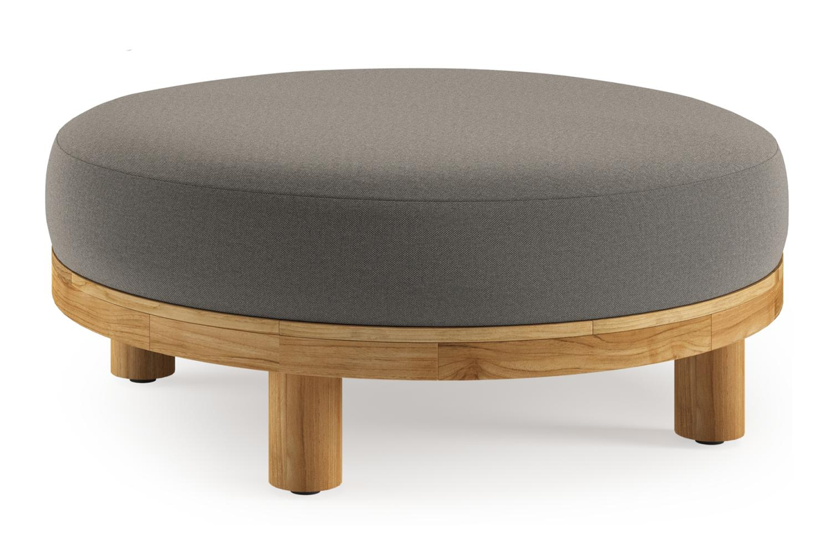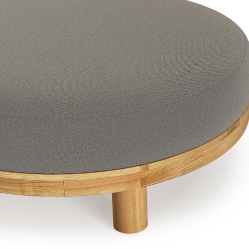 Salon de jardin pouf Donato en teck et corde ronde tissée verticalement beige et coussins en all weather sunbrella® luxe Natte Dark Taupe | Exterioo