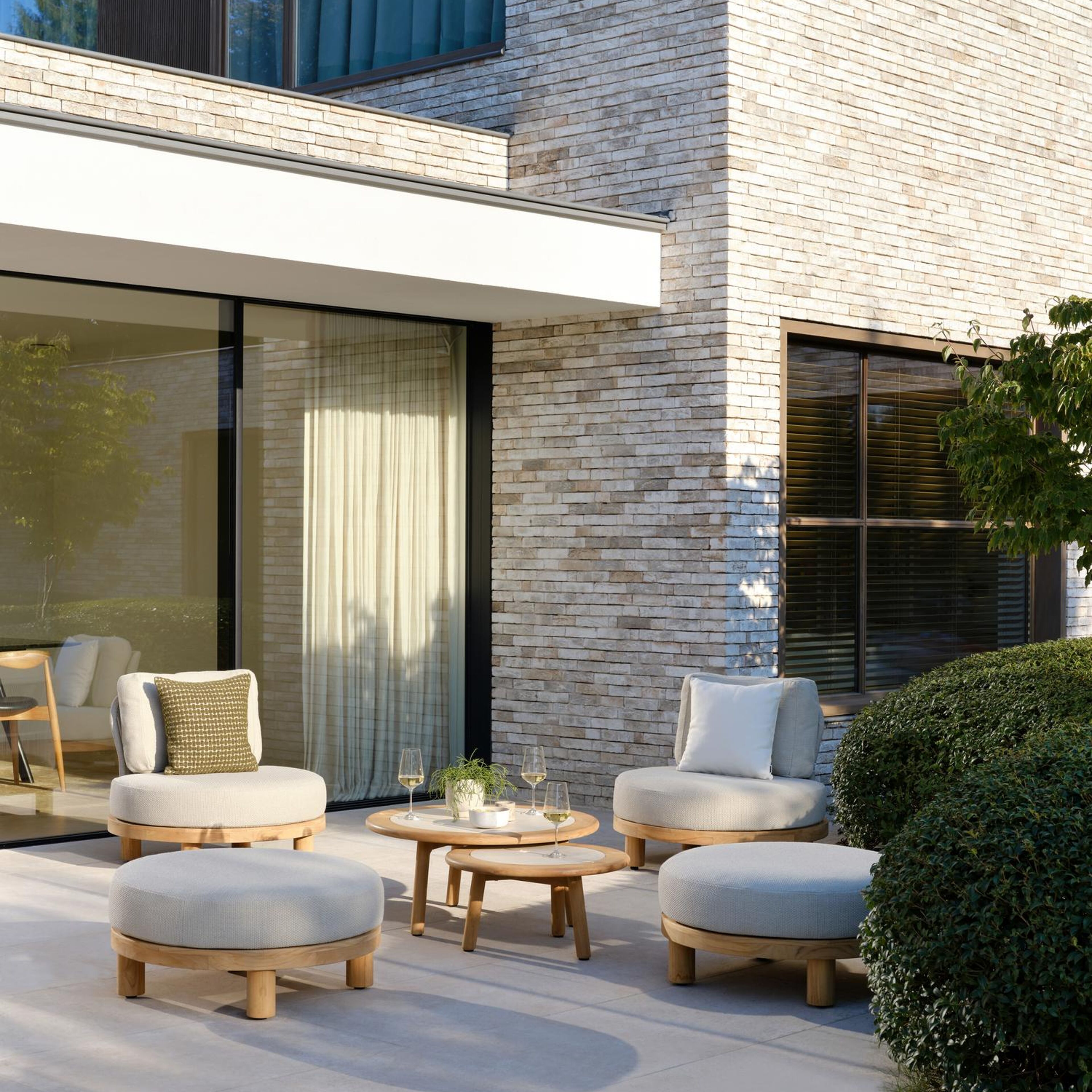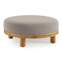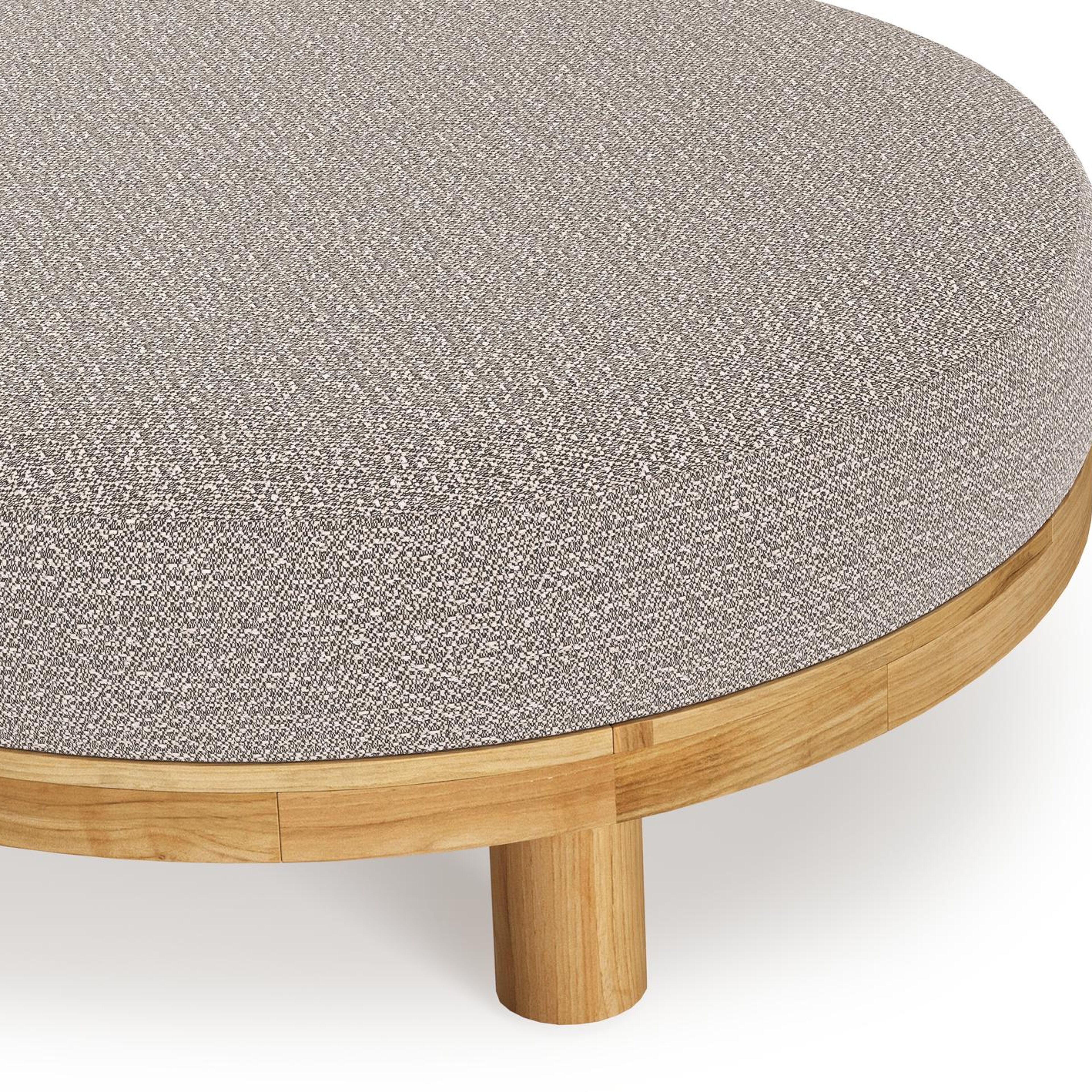 Salon de jardin pouf Donato en teck et corde ronde tissée verticalement beige et coussins en all weather sunbrella® luxe Wander Granite | Exterioo mobilier de jardin