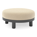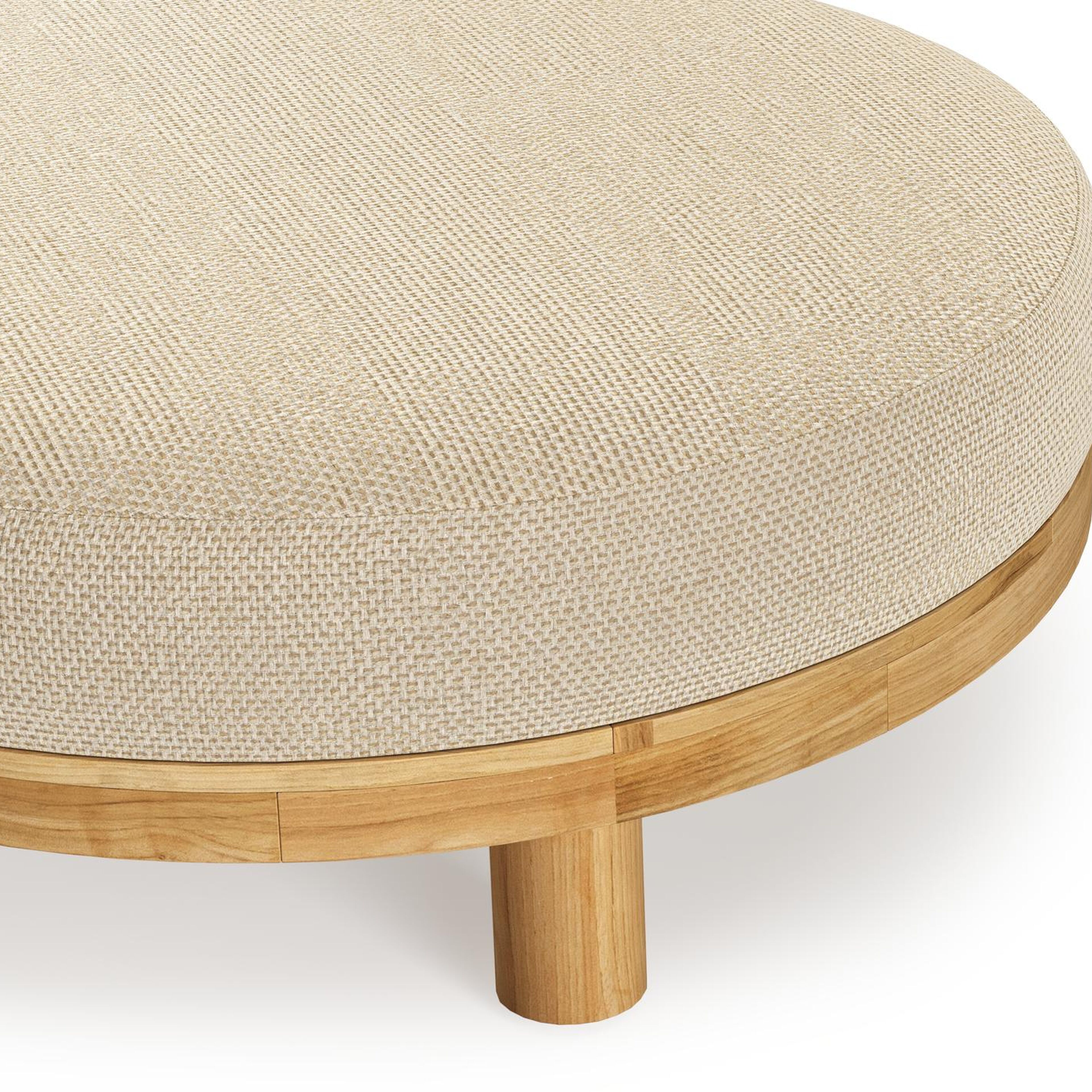 Salon de jardin pouf Donato en teck et corde ronde tissée verticalement beige et coussins en all weather cosytica Althea Camel | Exterioo mobilier de jardin