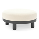 Salon de jardin pouf Donato en teck et corde ronde tissée verticalement beige et coussins en all weather cosytica Althea Off White | Exterioo mobilier de jardin