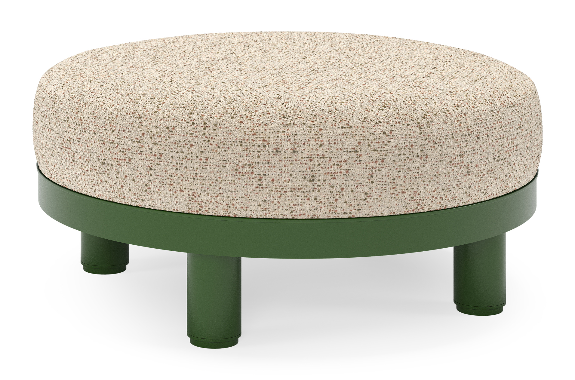 Salon de jardin pouf Donato en aluminium vert et coussins en all weather cosytica Bora Jungle | Exterioo mobilier de jardin