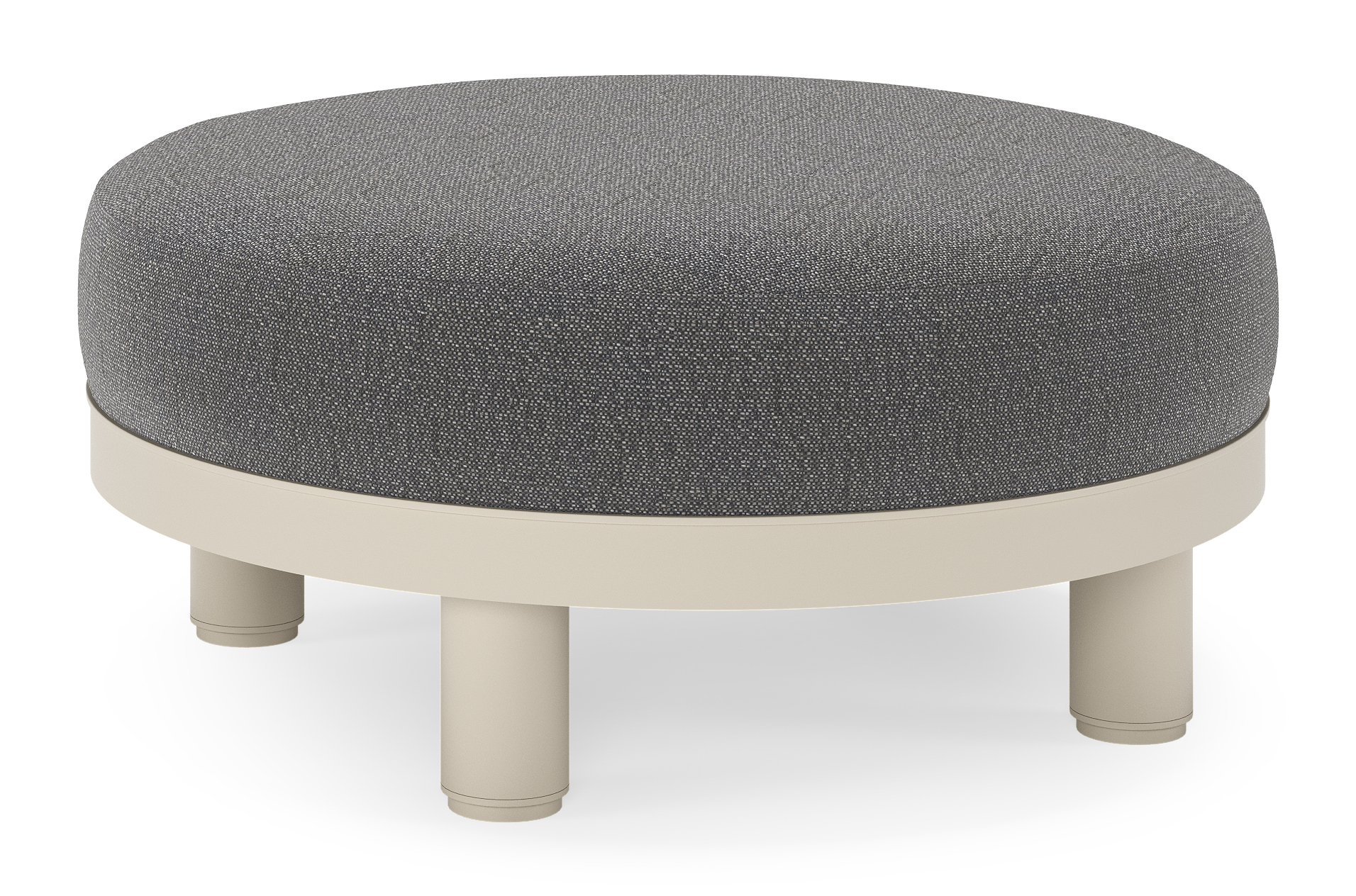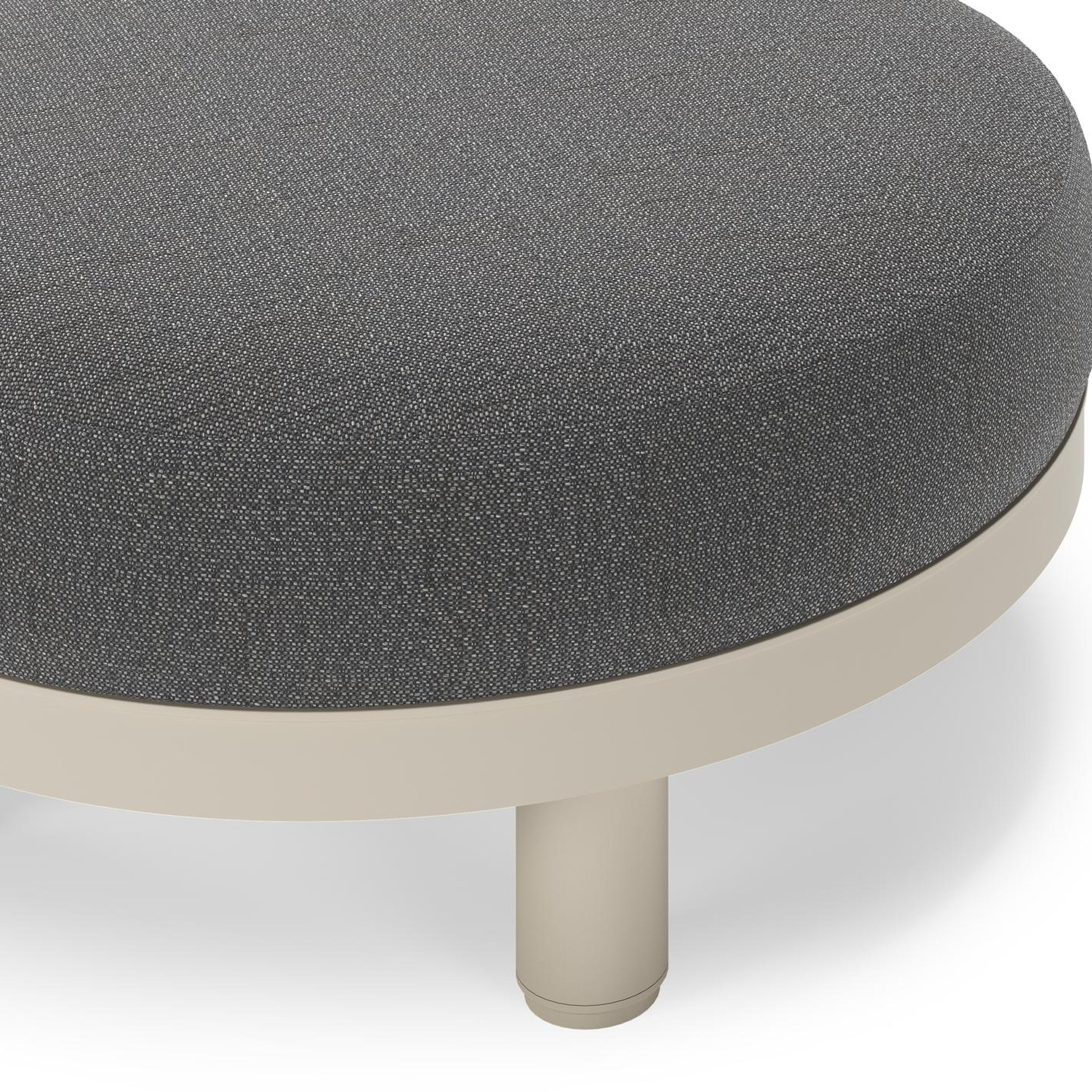 Salon de jardin pouf Donato en aluminium beige et coussins en all weather sunbrella® luxe Savane Tornado | Exterioo mobilier de jardin