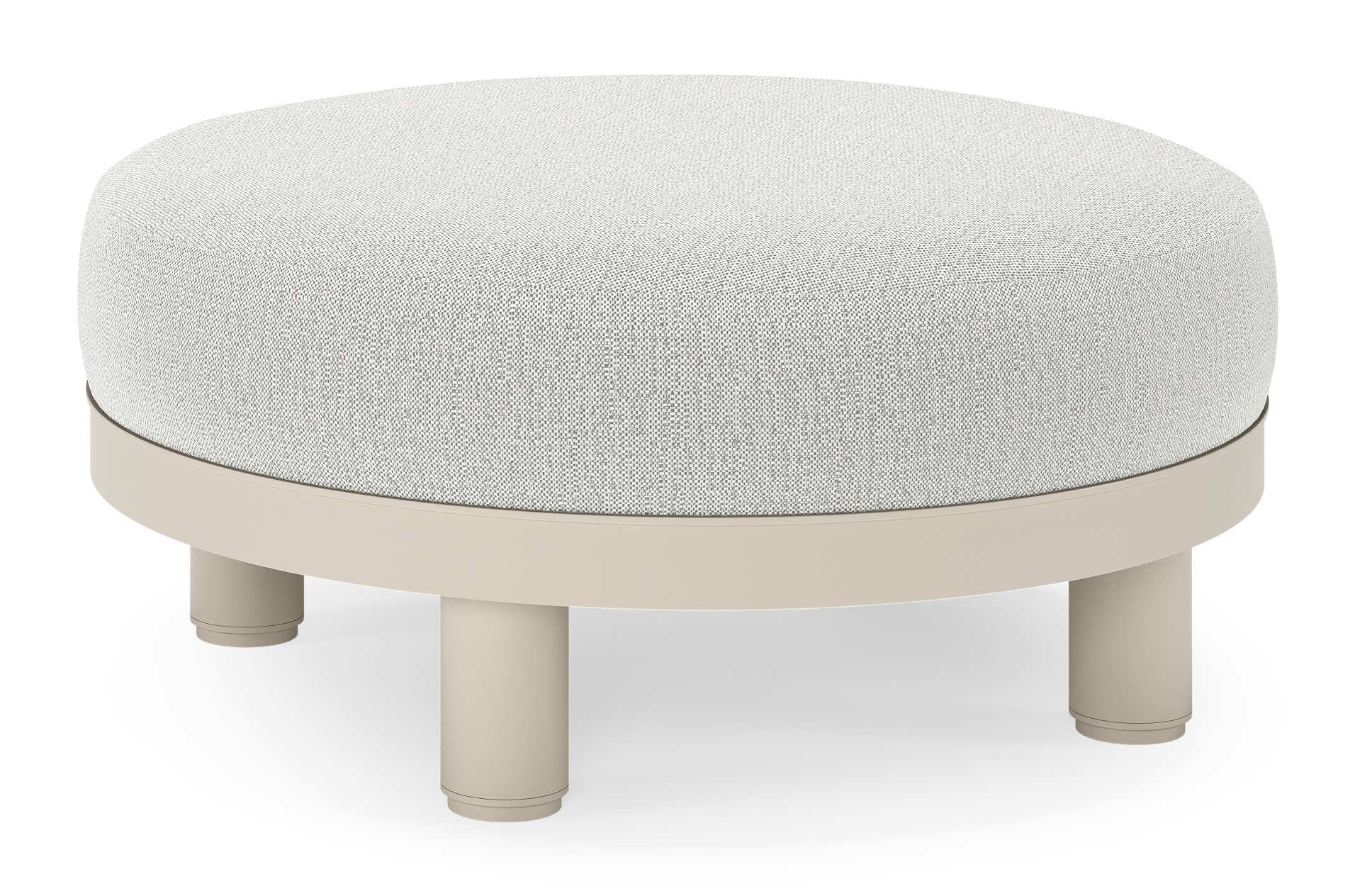Salon de jardin pouf Donato en aluminium beige et coussins en all weather sunbrella® luxe Savane Nimbus | Exterioo mobilier de jardin