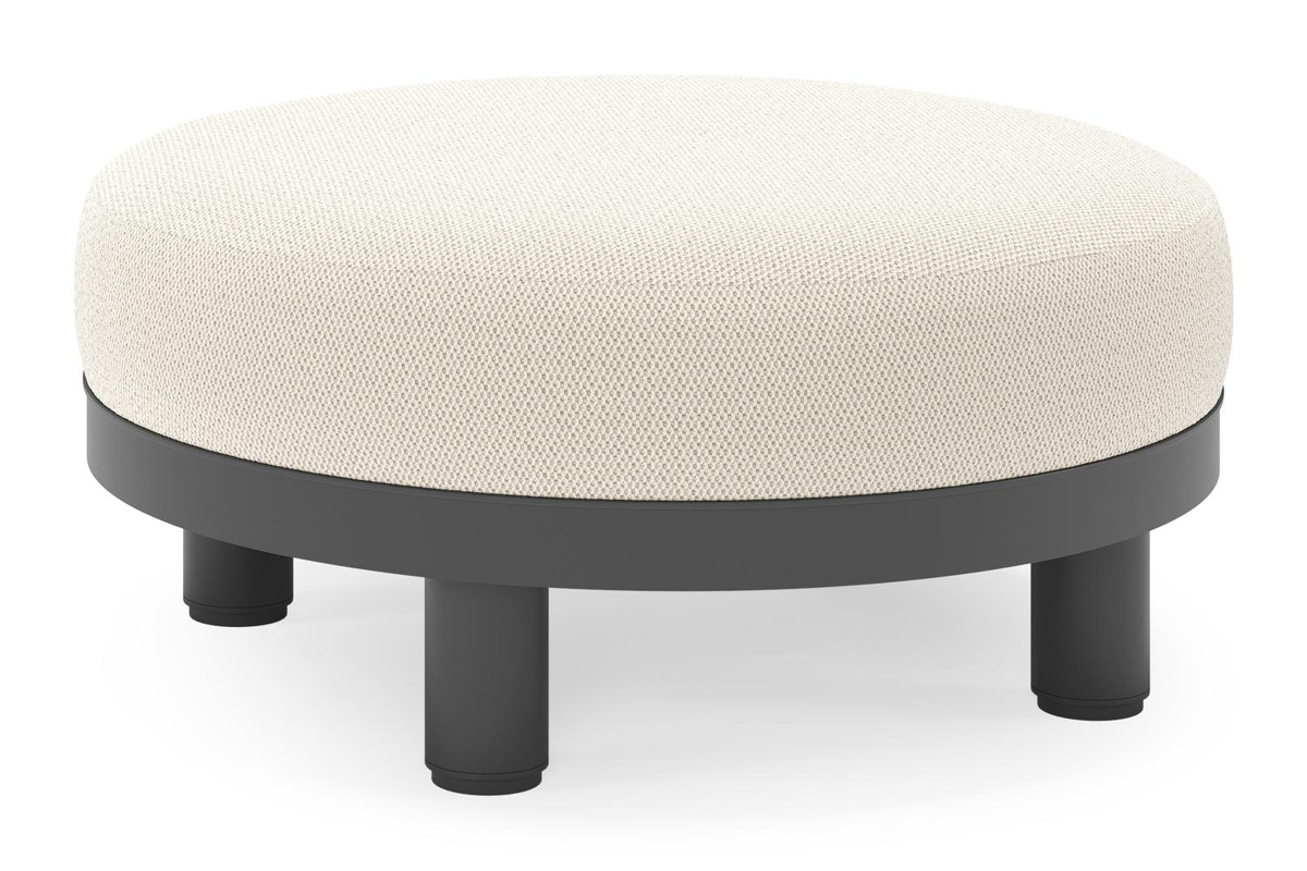 Salon de jardin pouf Donato en aluminium noir et coussins en all Weather Sunbrella® Luxe Lopi Marble | Exterioo