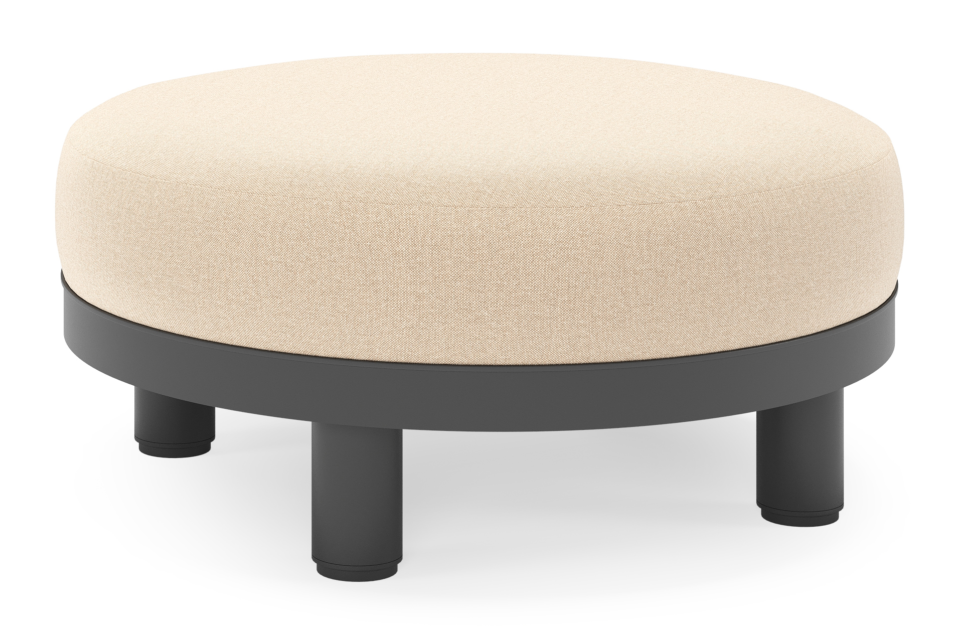 Salon de jardin pouf Donato en aluminium noir et coussins en all Weather Sunbrella® Luxe Natte Heather Beige | Exterioo mobilier de jardin