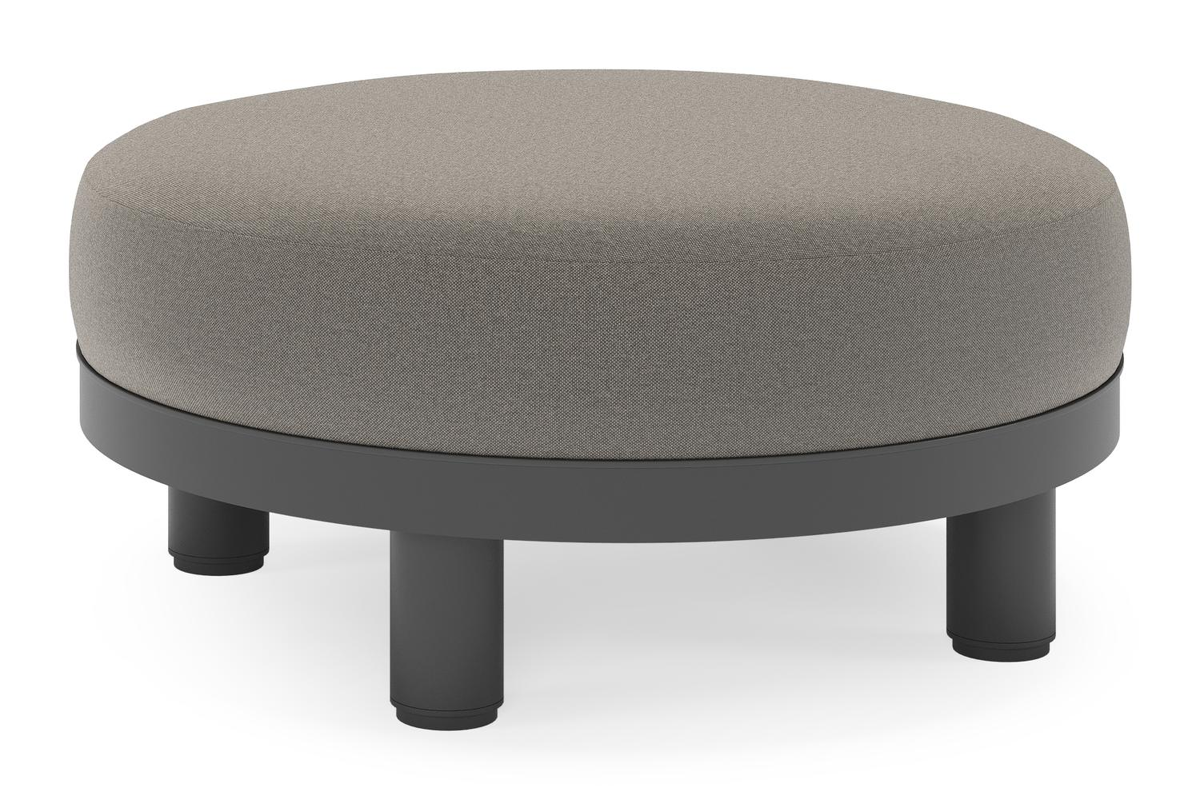 Salon de jardin pouf Donato en aluminium noir et coussins en all Weather Sunbrella® Luxe Natte Dark Taupe | Exterioo