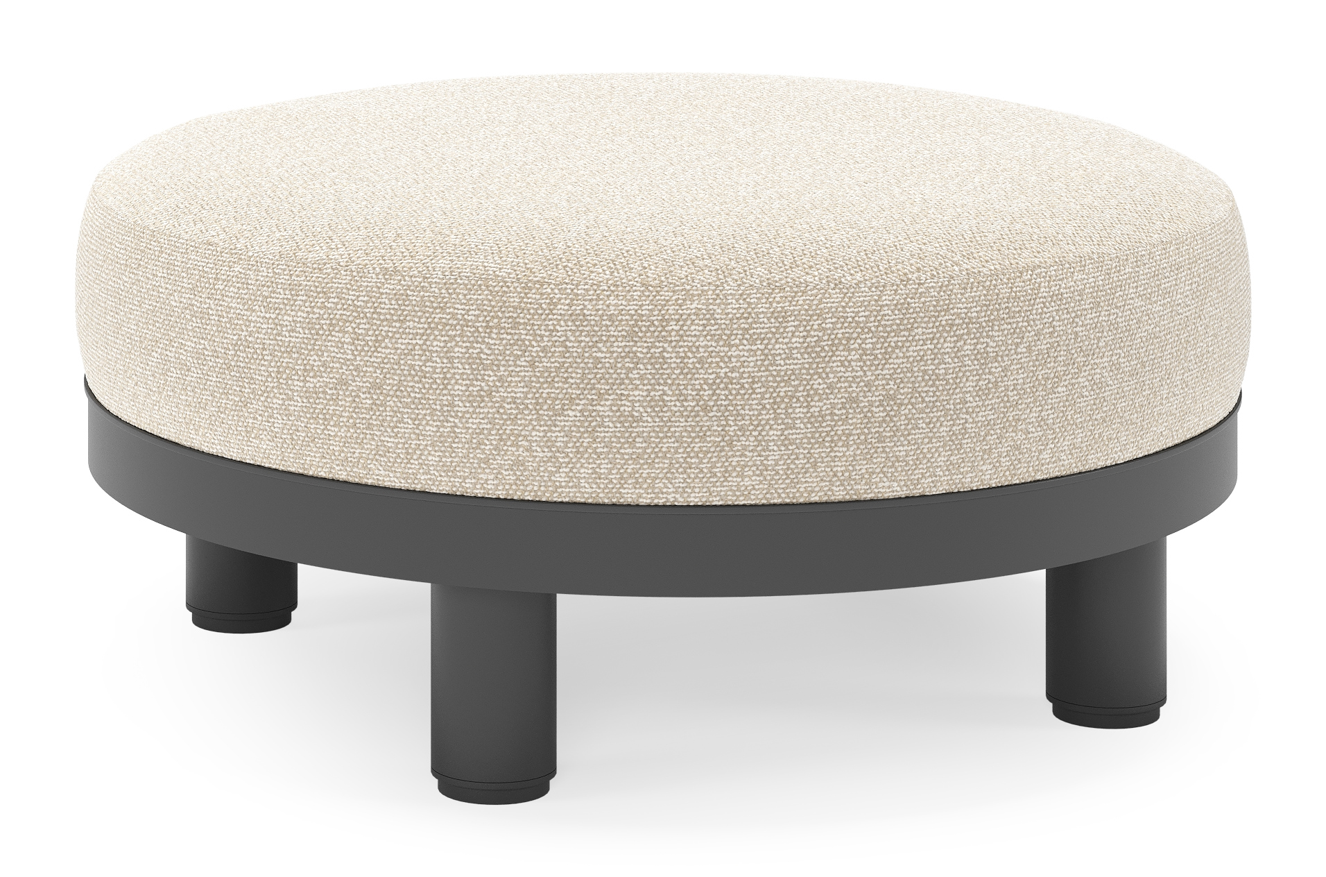 Salon de jardin pouf Donato en aluminium noir et coussins en all Weather cosytica Marbella Ecru | Exterioo mobilier de jardin