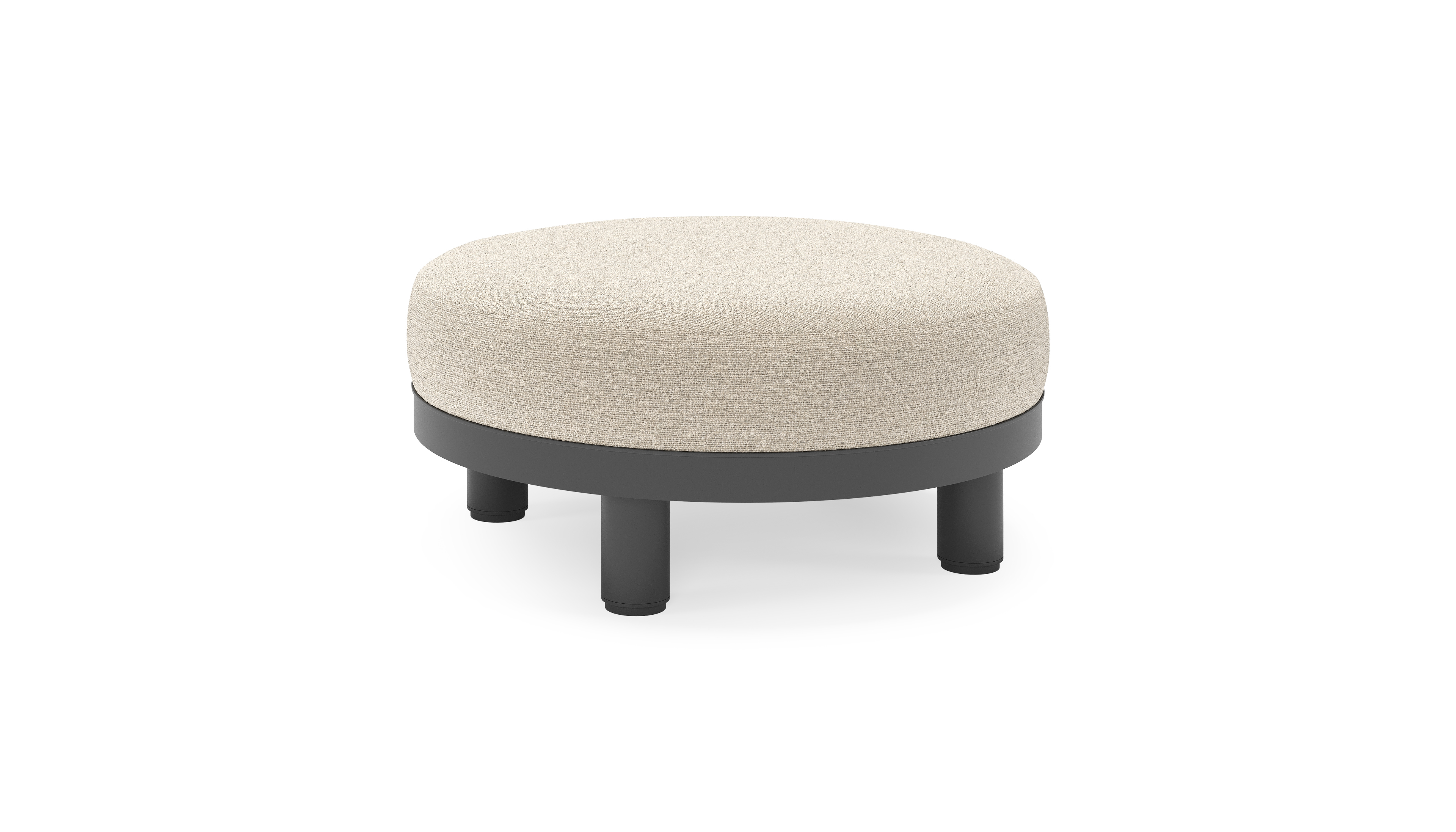 Salon de jardin pouf Donato en aluminium noir et coussins en all Weather cosytica Catania Greige | Exterioo mobilier de jardin
