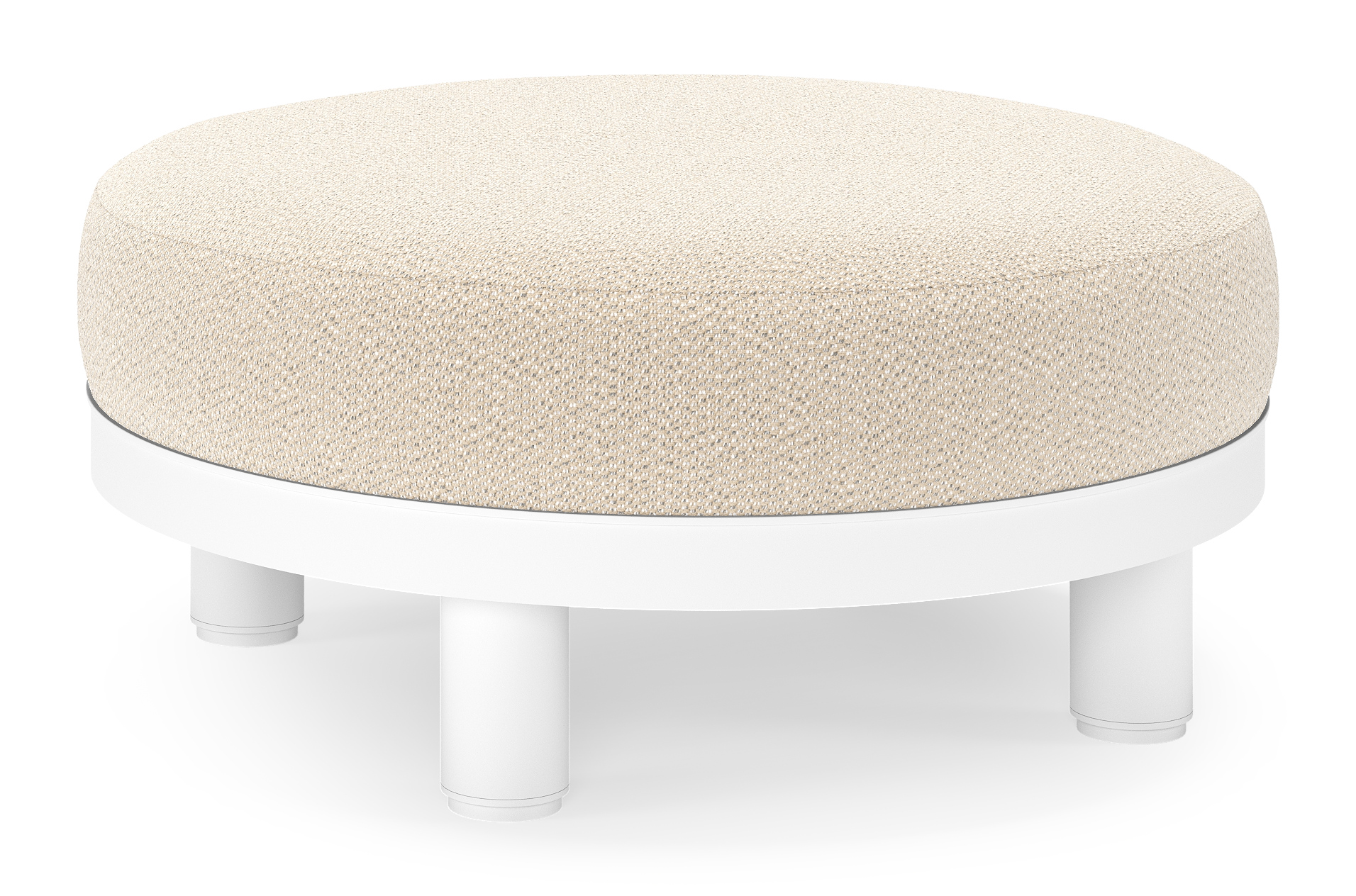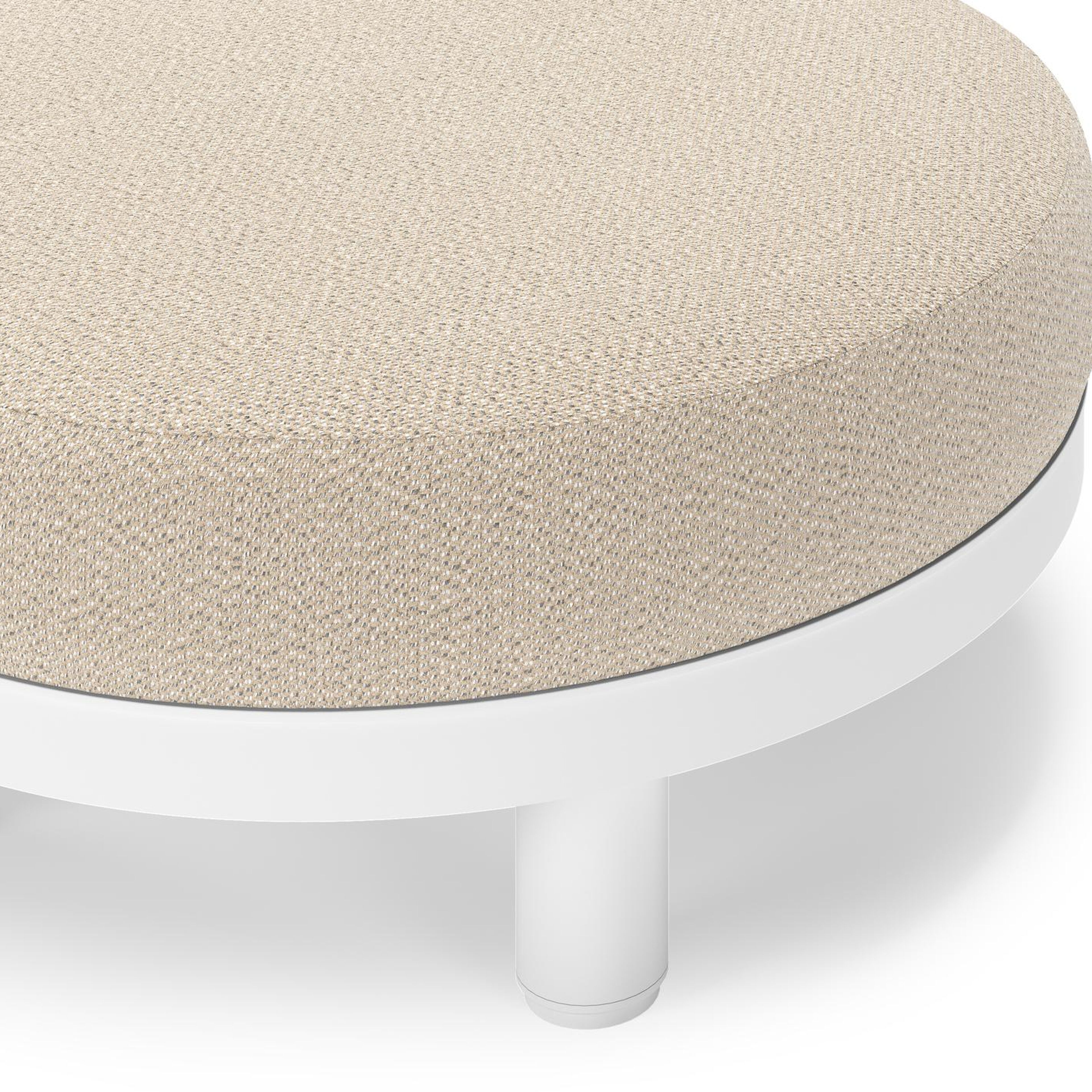 Salon de jardin pouf Donato en aluminium blanc et coussins en all Weather Sunbrella® Luxe Lopi Sand | Exterioo mobilier de jardin