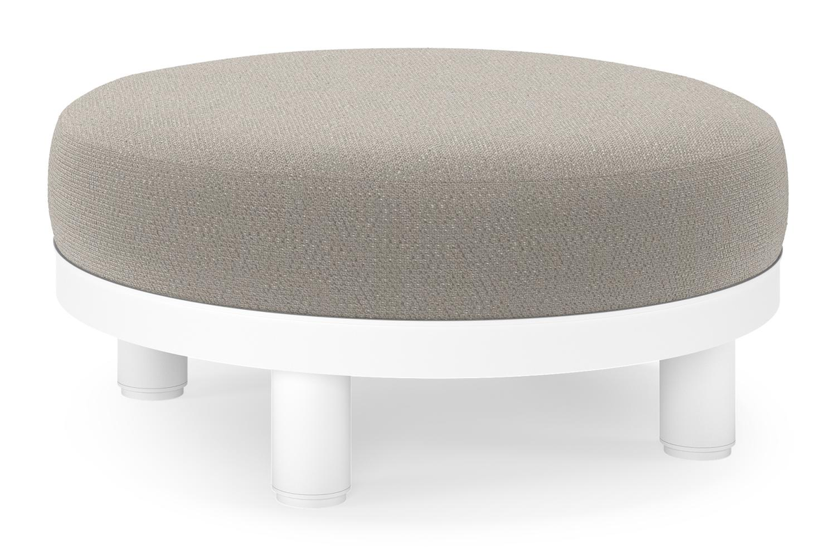 Salon de jardin pouf Donato en aluminium blanc et coussins en all Weather Sunbrella® Luxe Lopi Silver | Exterioo