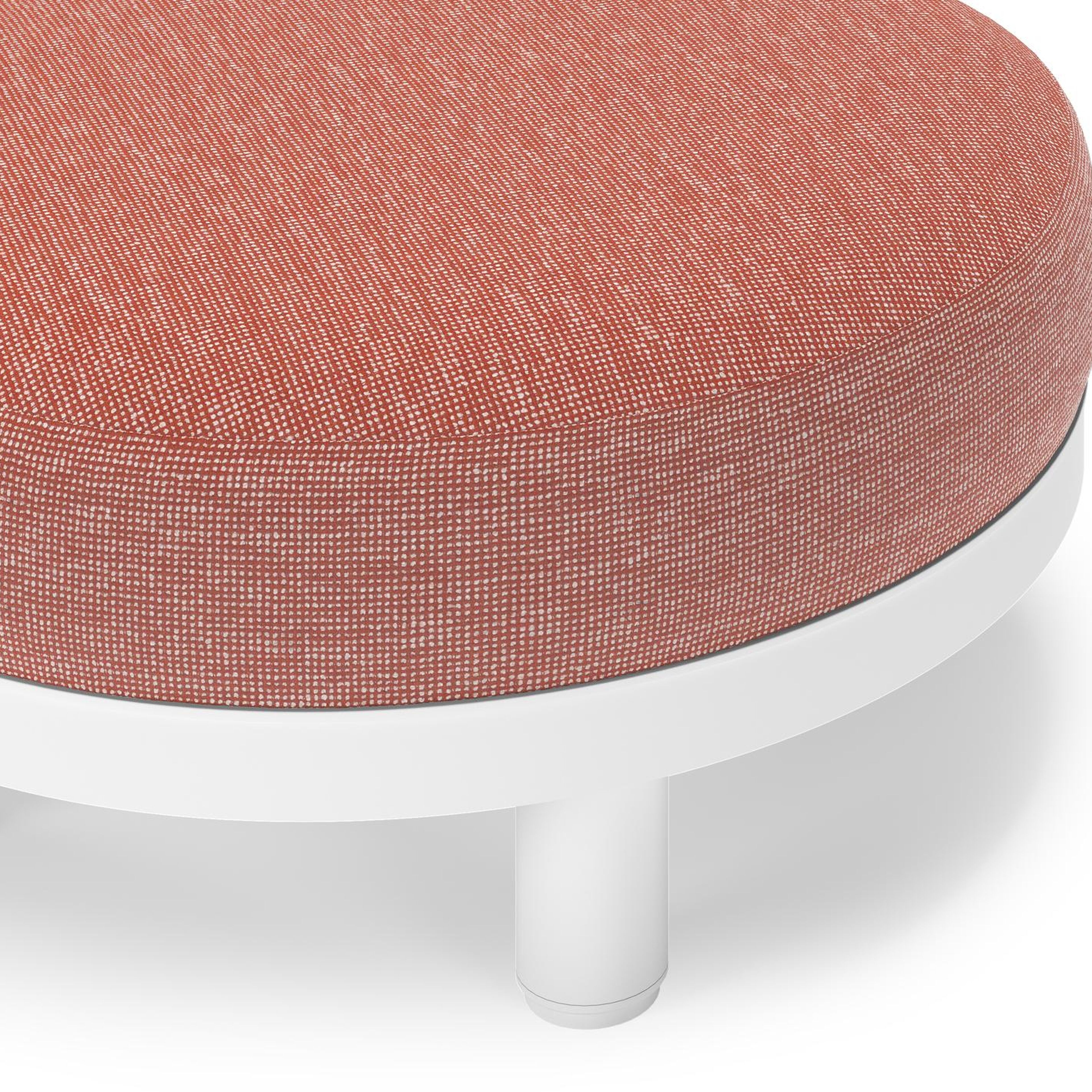 Salon de jardin pouf Donato en aluminium blanc et coussins en all Weather Sunbrella® Luxe Slow Alezan | Exterioo mobilier de jardin